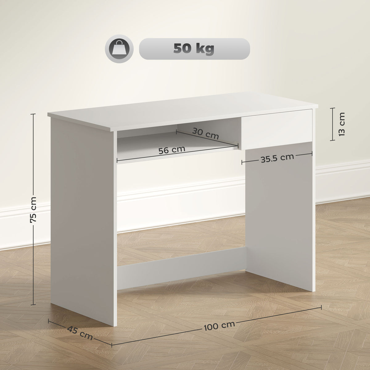 HOMCOM 100cm Compact Computer Desk with Keyboard Tray, Home Office Desk with Drawer for Bedroom Study, White - White