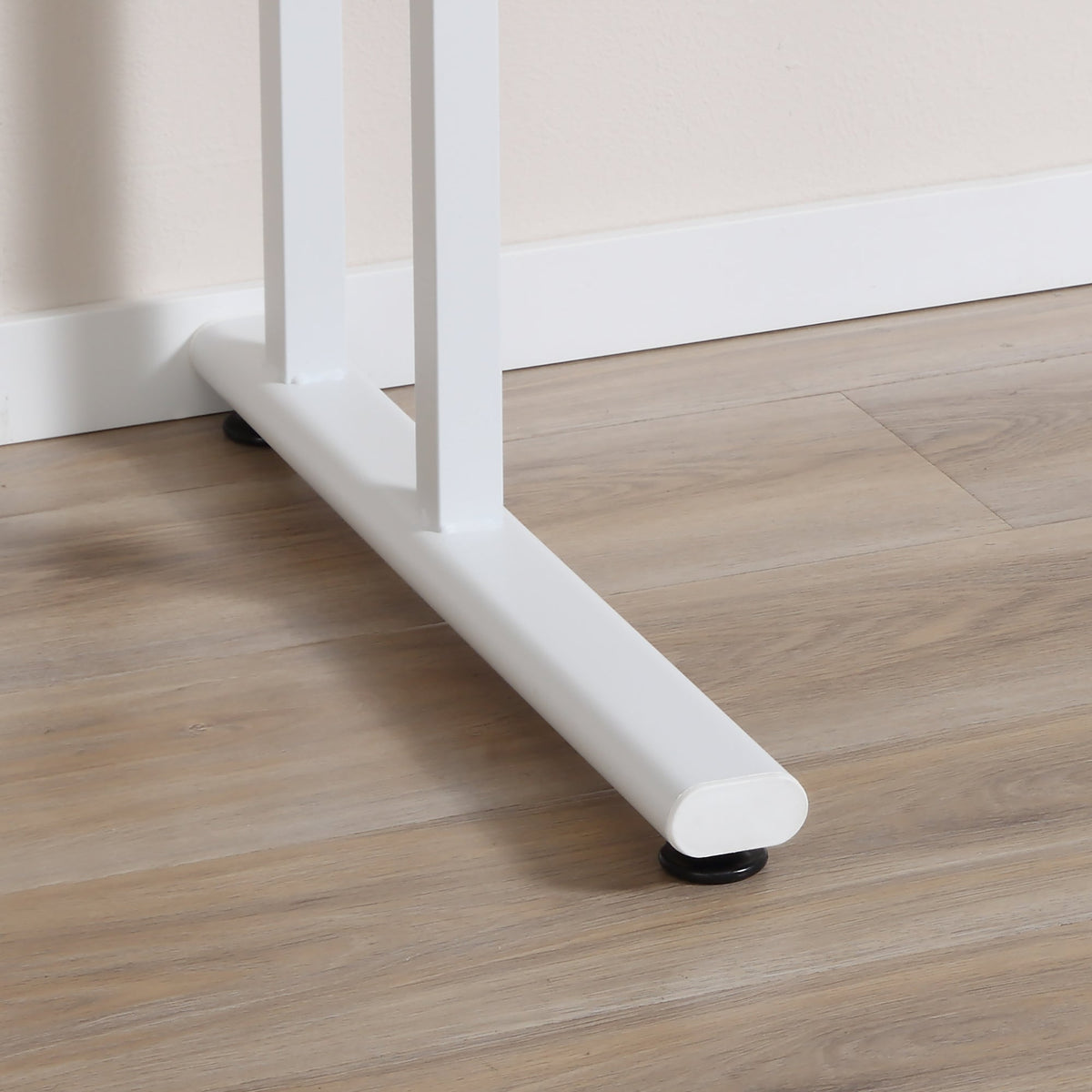 This table from HOMCOM is a versatile piece around: you'll often catch a similar piece around in offices, shops and schools. This spacious desk gives you lots of working room - it's great for working from, with room for your monitors, screens, keyboard, mouse, books and more. Two holes for organising wires. The metal frame is strong and durable, with adjustable feet to ensure the table keeps balanced at all times. Large under-desk clearance for comfortable legroom.