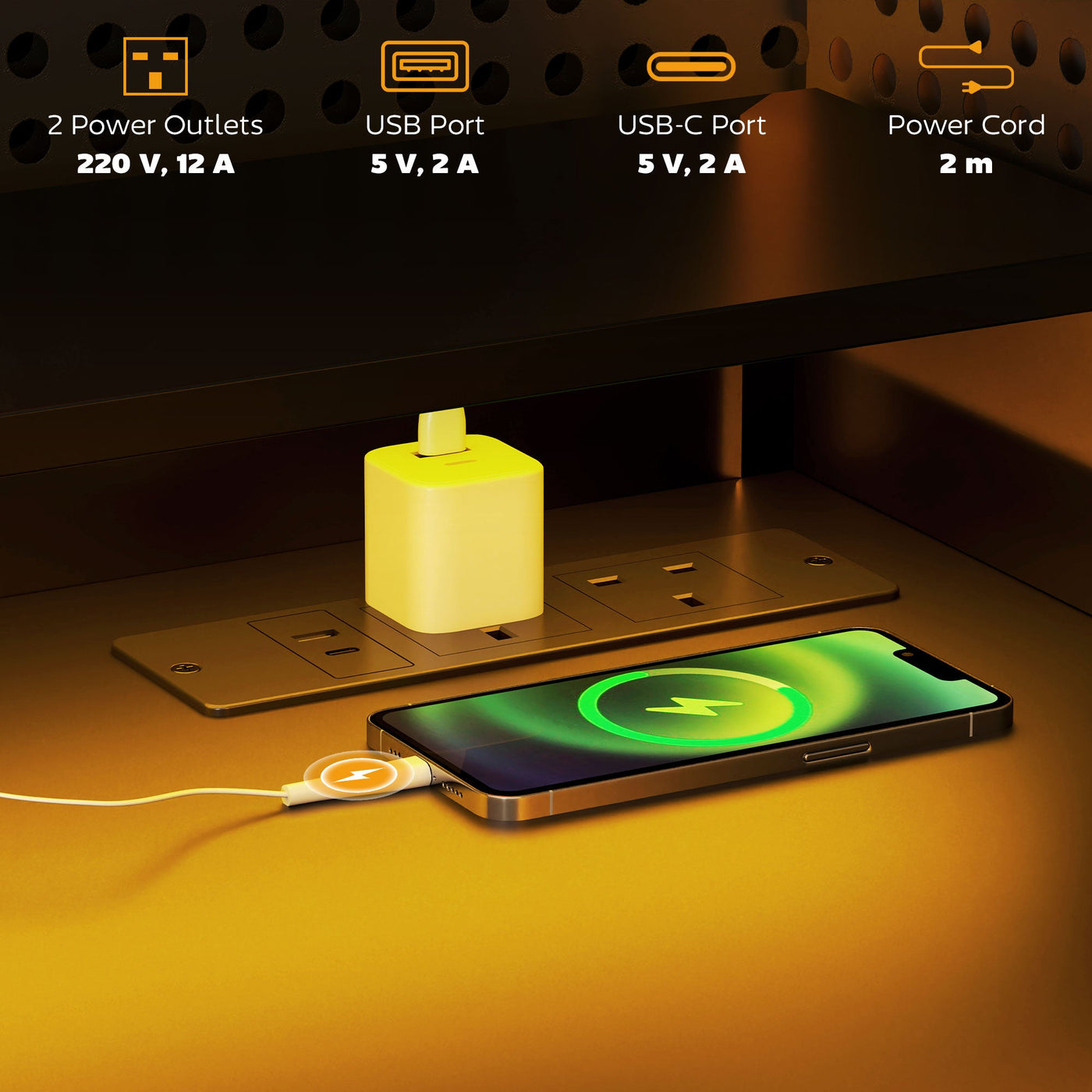 Revamp your workspace with the industrial computer table from HOMCOM. This work desk features a vibrant RGB LED light strip with 16 colours and four dynamic modes, all easily controlled via remote, adding a splash of personality to your setup. Stay powered up with the built-in charging station, ensuring all your devices are always ready for action. The ergonomic monitor stand enhances your comfort, while lots of storage options keep your essentials organised. Upgrade your workspace today.