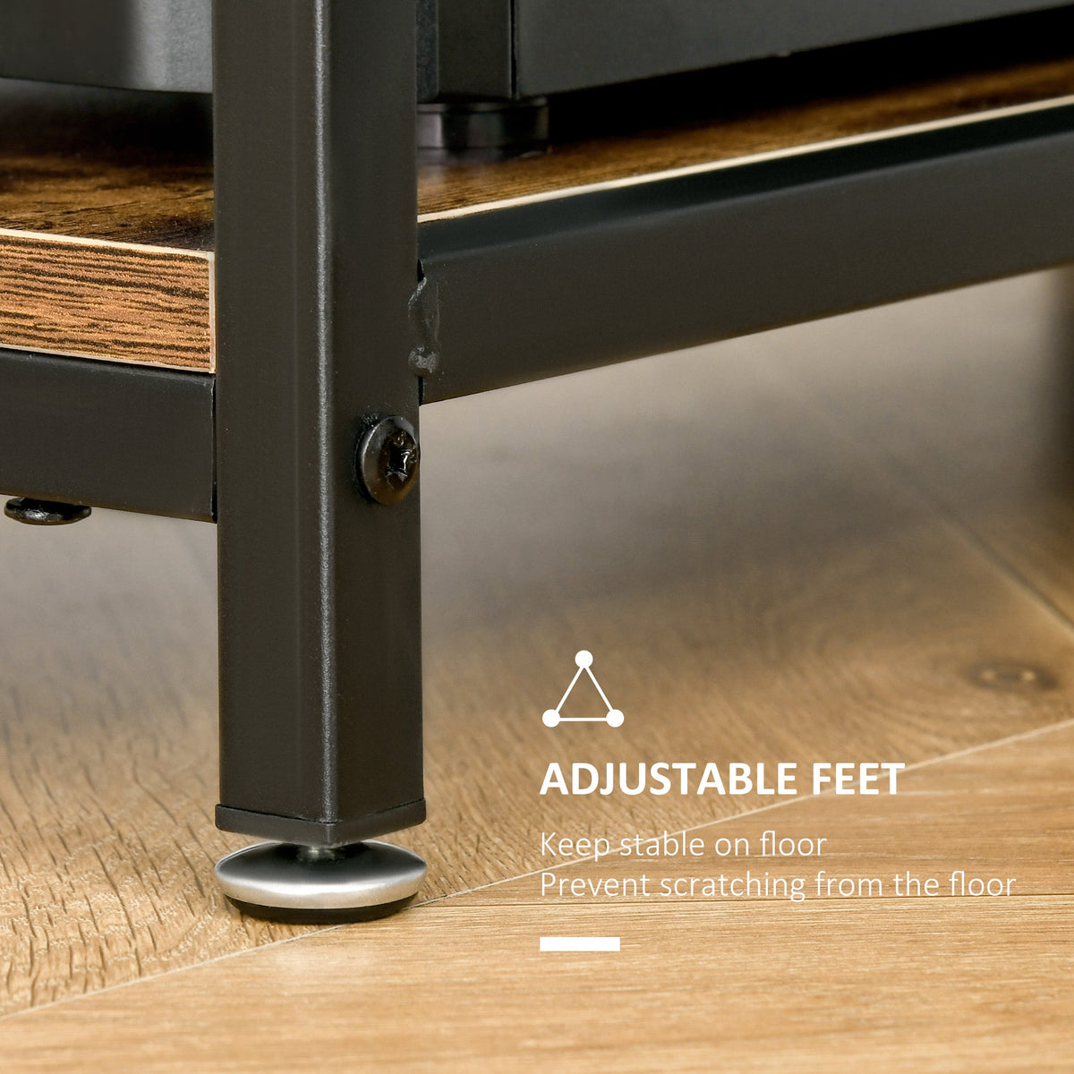 Make room for working anywhere with this desk from HOMCOM. Comes with a wide table top, giving you lots of room to work, as well as holding a monitor, laptop, keyboard and more. Features middle shelf for holding all essentials close to hand, with the bottom side shelf your CPU. Steel legs for full support, finished with adjustable feet to keep it balanced.