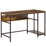 HOMCOM Computer Desk with Storage, 120 x 60cm Home Office Desk with 2 Shelves and Steel Frame, Writing Table for Living Room, Study, Rustic Brown - Rustic Brown
