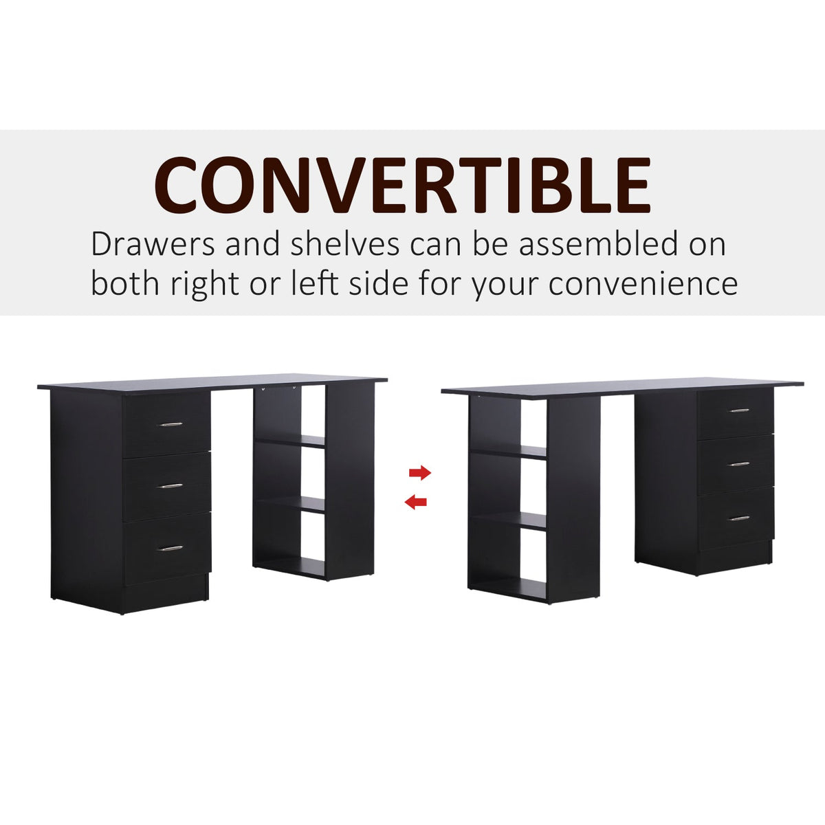 HOMCOM Computer Desk, Writing Table, PC Workstation with 3 Storage Shelves and Drawers, Silver Handle, for Home Office, Black - Black