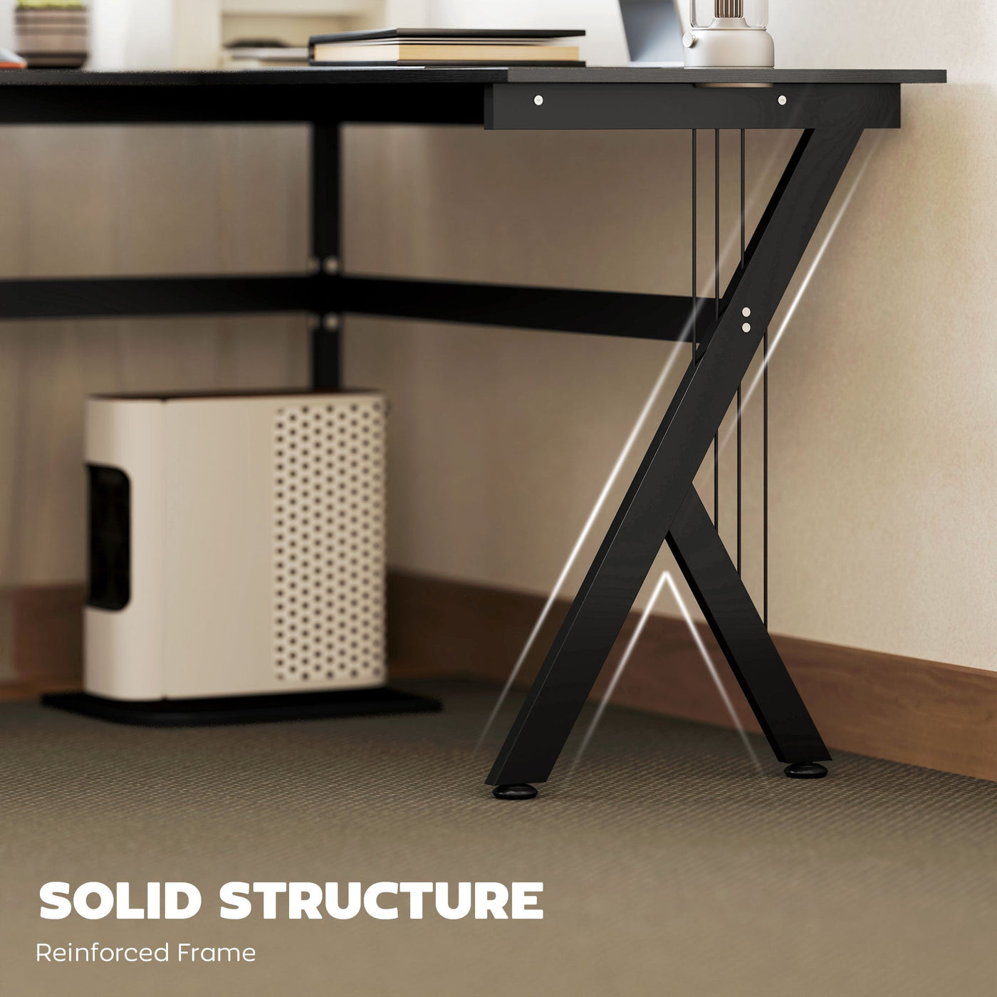 HOMCOM L Shaped Gaming Desk, 155 x 130cm Corner Computer Desk with CPU Stand for Home Office, Study Workstation, Black - Black