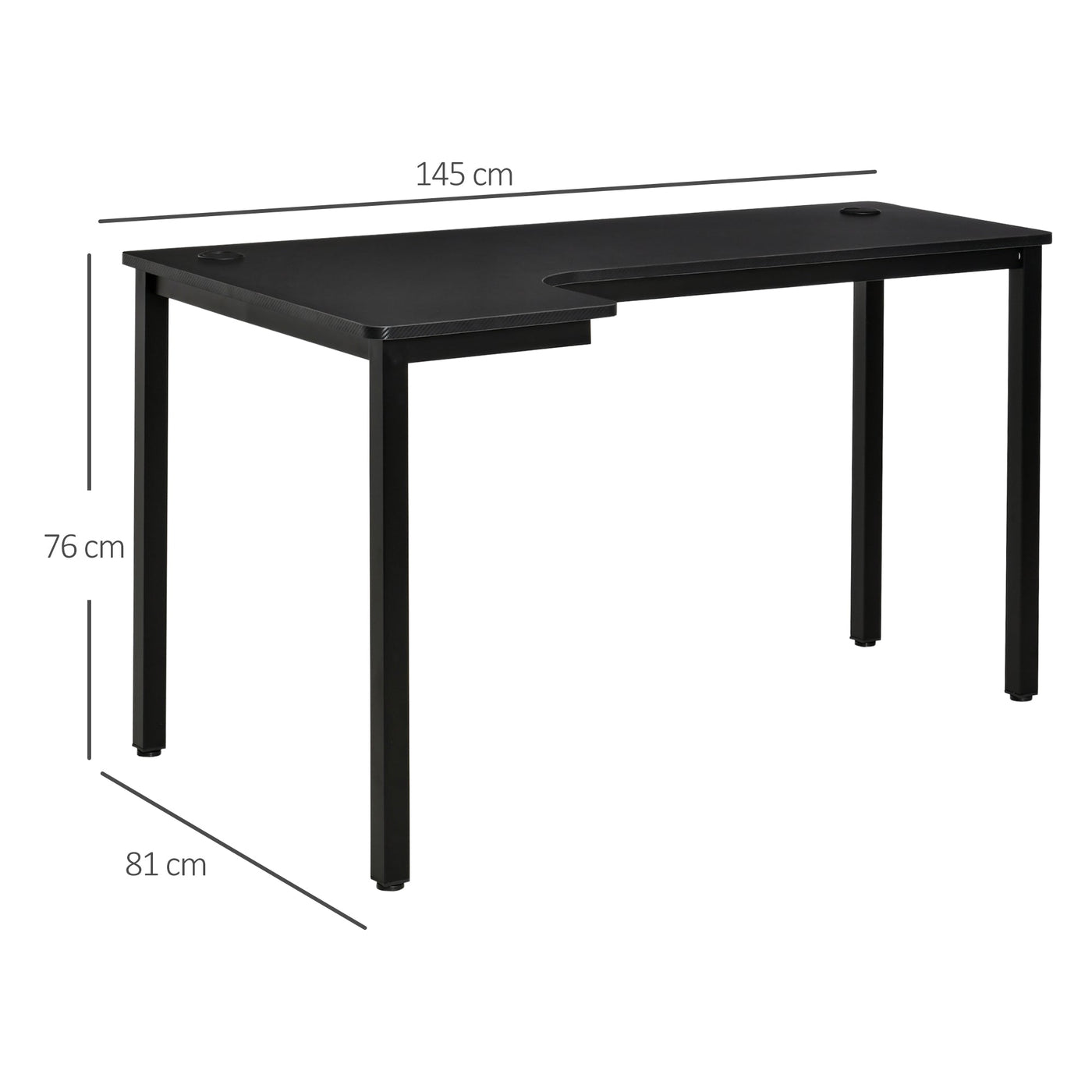 HOMCOM L-Shaped Gaming Desk, Computer Corner Desk, Home Office Workstation with Cable Management, 145 x 81 x 76cm, Black, Left - Black