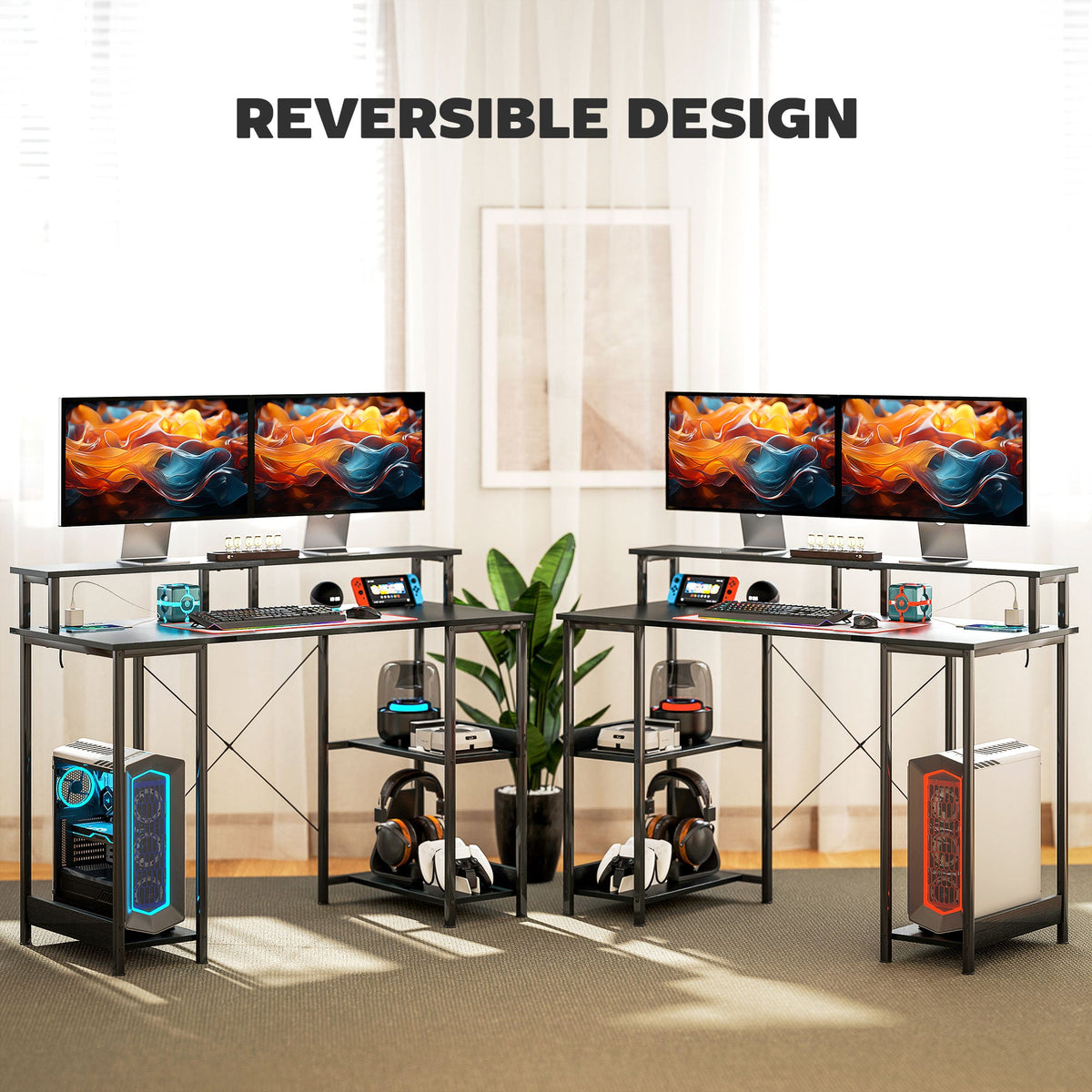 - Reversible two shelves and CPU stand for keeping all files and work essentials together