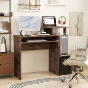 Introducing the compact computer desk for your workspace! This versatile unit features a handy tabletop shelf, a slide-out keyboard tray for comfortable typing, and a storage cabinet with a removable fabric drawer to keep your essentials organized. At just 100 x 40 x 87 cm (L x W x H), it’s perfect for any small space, from bedrooms to living rooms. Sturdy and versatile, it’s ready for work, play, or study. With a sleek design, rounded corners for safety, and non-slip foot pads, this writing desk is not just functional - it’s a statement piece for your home office. Bring it home now and transform your space! Maximize Your Workspace with Smart Storage: The computer desk that boasts a tabletop shelf for quick access to essentials and a slide-out keyboard tray for ergonomic typing. It also comes with a storage cabinet with a removable as well as foldable fabric drawer to keep your cables and documents neatly organized. Compact Space Saver: Designed with the modern minimalist in mind, this home office desk measures a compact 100 x 40 x 87 cm (L x W x H), making it the perfect fit for small spaces. It’s the ideal solution for those looking to create a dedicated workspace in a bedroom, living room, or any tight corner of your home. Built to Last: The well-crafted writing desk is a testament to durability and strength. It’s designed to hold heavy gaming rigs, large monitors, and all your office equipment with ease, ensuring that your workspace remains stable and secure. Versatile Functionality: This compact PC desk can adapt to your every need. Whether you’re diving into a work project, immersed in an online game, or studying for that big exam, this versatile desk has got your back. Elegant Design with Safety in Mind: Combining functionality with style, this study desk will elevate your space. With its smooth, sleek surface and thoughtfully rounded corners, it’s a stylish and safe addition to your home office. The non-slip foot pads add an extra layer of security.