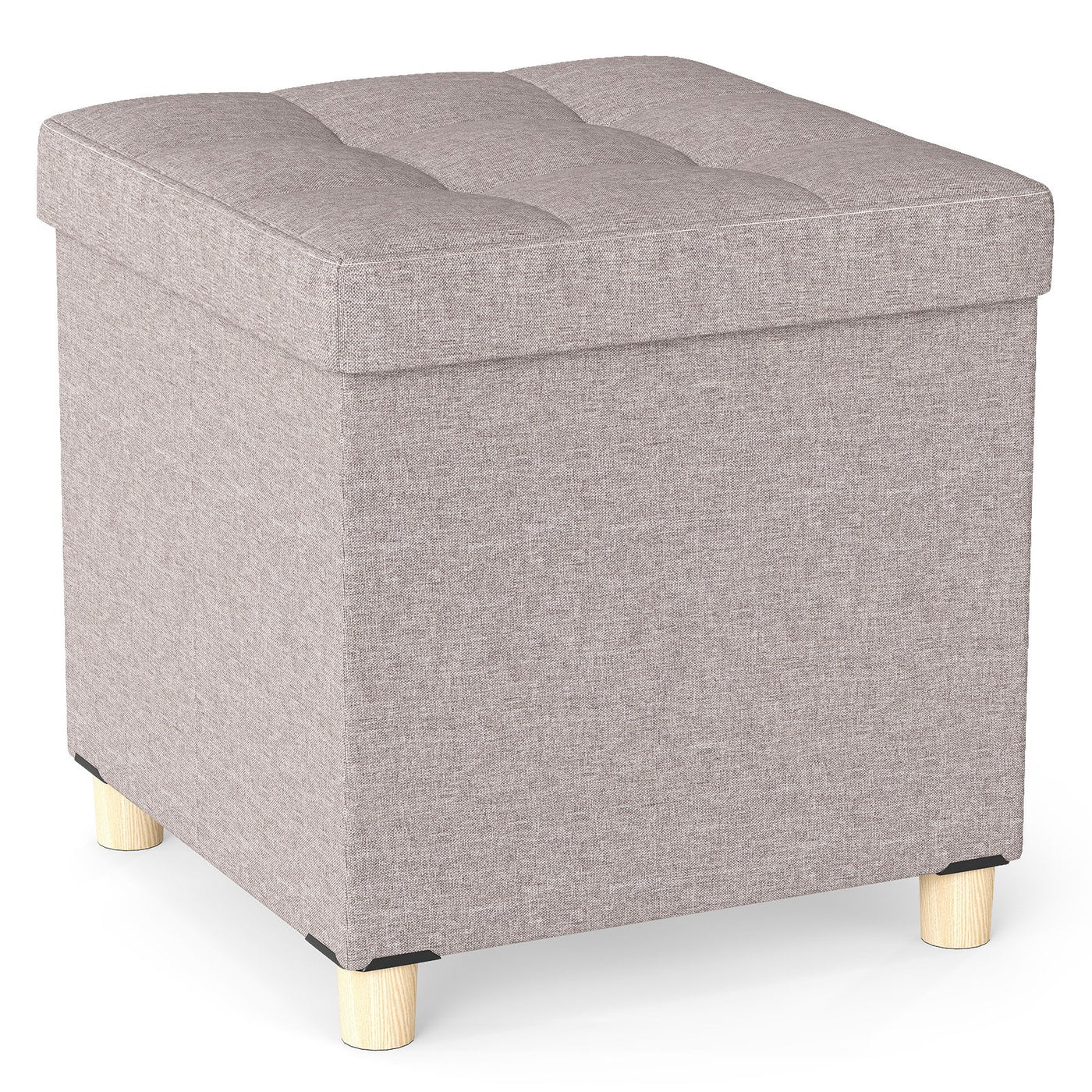 Ottoman with Storage Linen Fabric Footstool with Tray and Rubber Wood Legs-Beige
