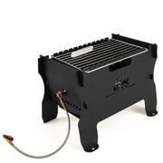 Engineered for convenience and flexibility, this portable grill offers a detachable gas hose and burner for butane usage, and the option to switch to charcoal, wood, or burning pellets to suit your taste and circumstances. The 28 x 19 cm grill grate is ideal for cooking a variety of foods, from kebabs to vegetables, enhanced by excellent air circulation that ensures efficient fuel use and even cooking. Constructed from premium metal, this grill promises lasting reliability wherever you go. Swift to set up and pack away into its handy carry bag, this dual-fuel grill is your perfect outdoor companion for memorable experiences. Multi-Fuel Option: This grill features a detachable gas hose and burner for butane use (butane tank not included). You can also remove them and utilize charcoal, wood, or burning pellets for a more traditional cooking experience. Enjoy Various Food: Equipped with a 26 x 19 cm grill grate and grooves on both sides for skewers, the camping grill is perfect for barbecuing kebabs, steaks, vegetables, and prawns for versatile outdoor cooking. Excellent Air Circulation: Designed with multiple air vents around the body, this countertop grill ensures optimal air circulation. Such design will lead to continuous oxygen supply, promoting efficient and even burning during cooking. Premium Metal Structure: Crafted from metal with a high-temperature resistant paint, this camping stove withstands heat and prevents deformation. The premium material ensures durability and long-lasting performance for frequent use. Take the Grill Anywhere: Easy to assemble and disassemble, this compact grill comes with a carrying bag for convenient storage and transport, making it ideal for camping, picnics, and other outdoor events.