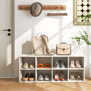 8 Grid Shoe Bench 2 in 1 Shoe Organizer with 8 Storage Cubbies-White