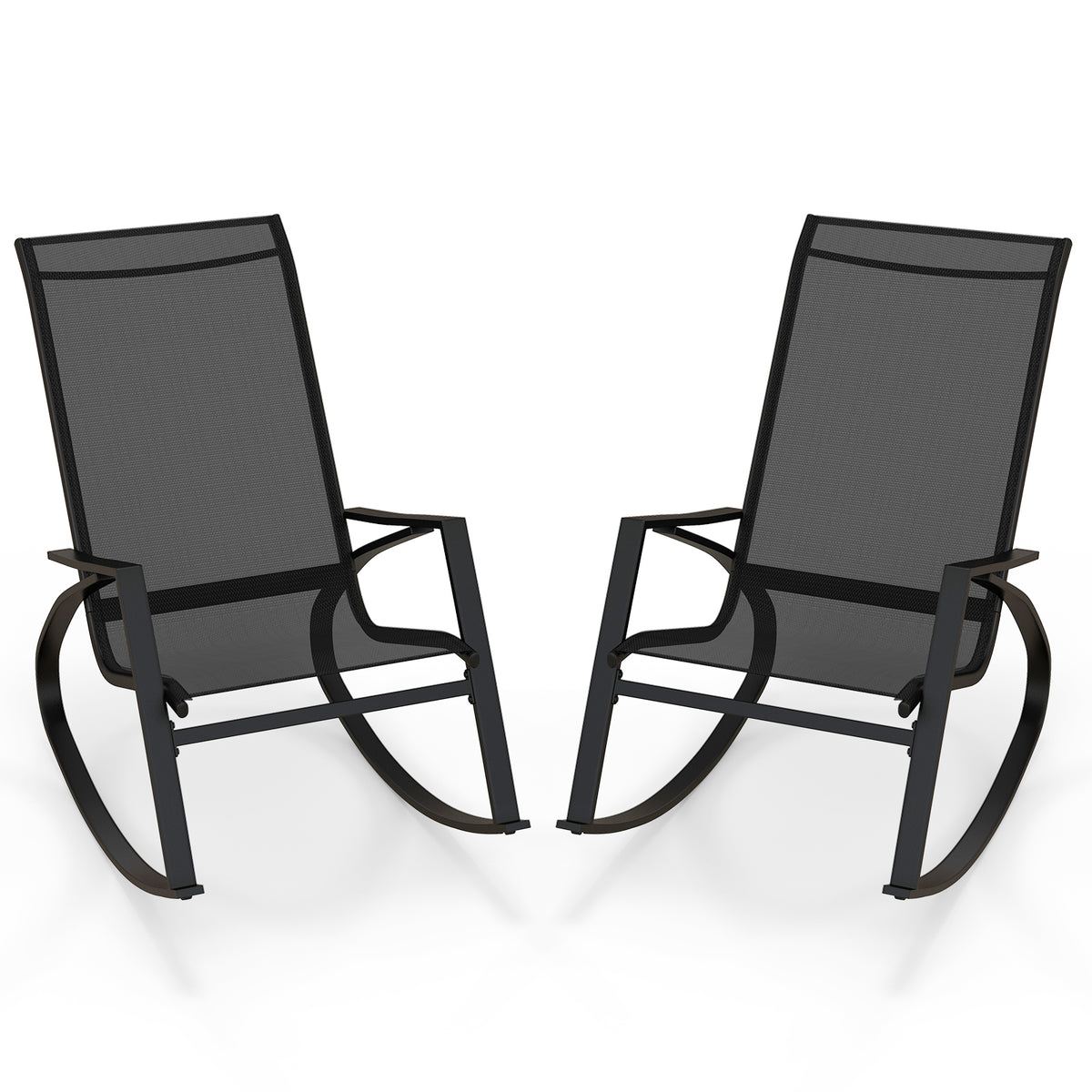 2 Pieces Patio Rocking Chairs with Ergonomic Backrest and Safe Stoppers-Black
