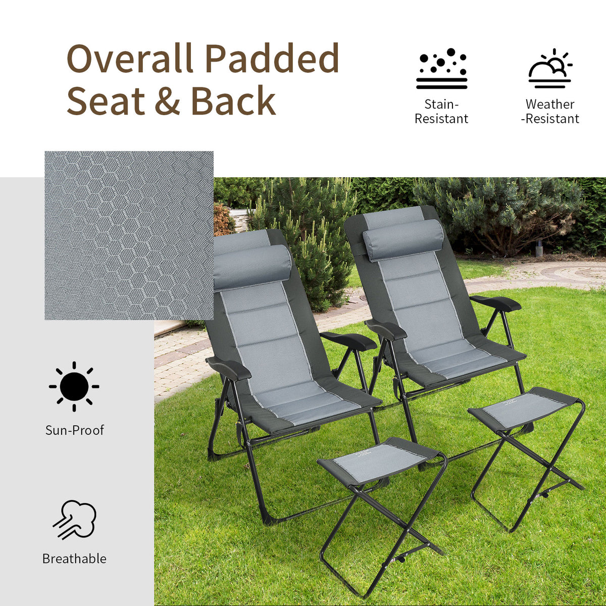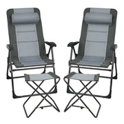 Set of 4 Patio Dining Chairs and Ottoman with 7-Position Adjustable Backrest-Grey