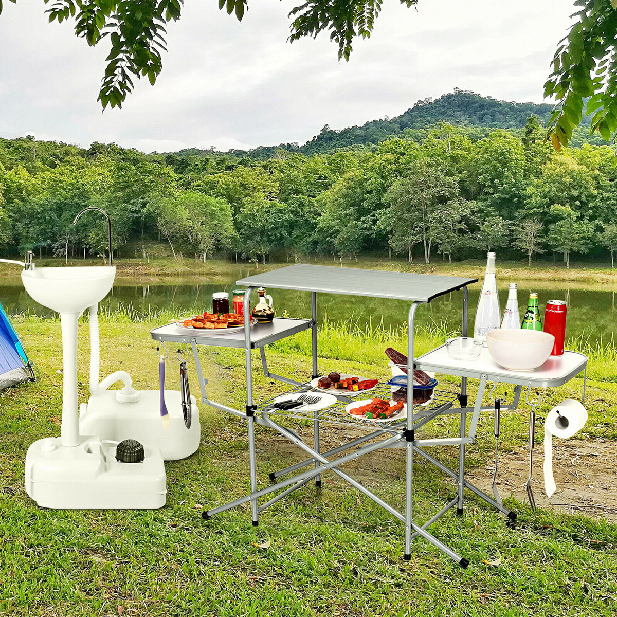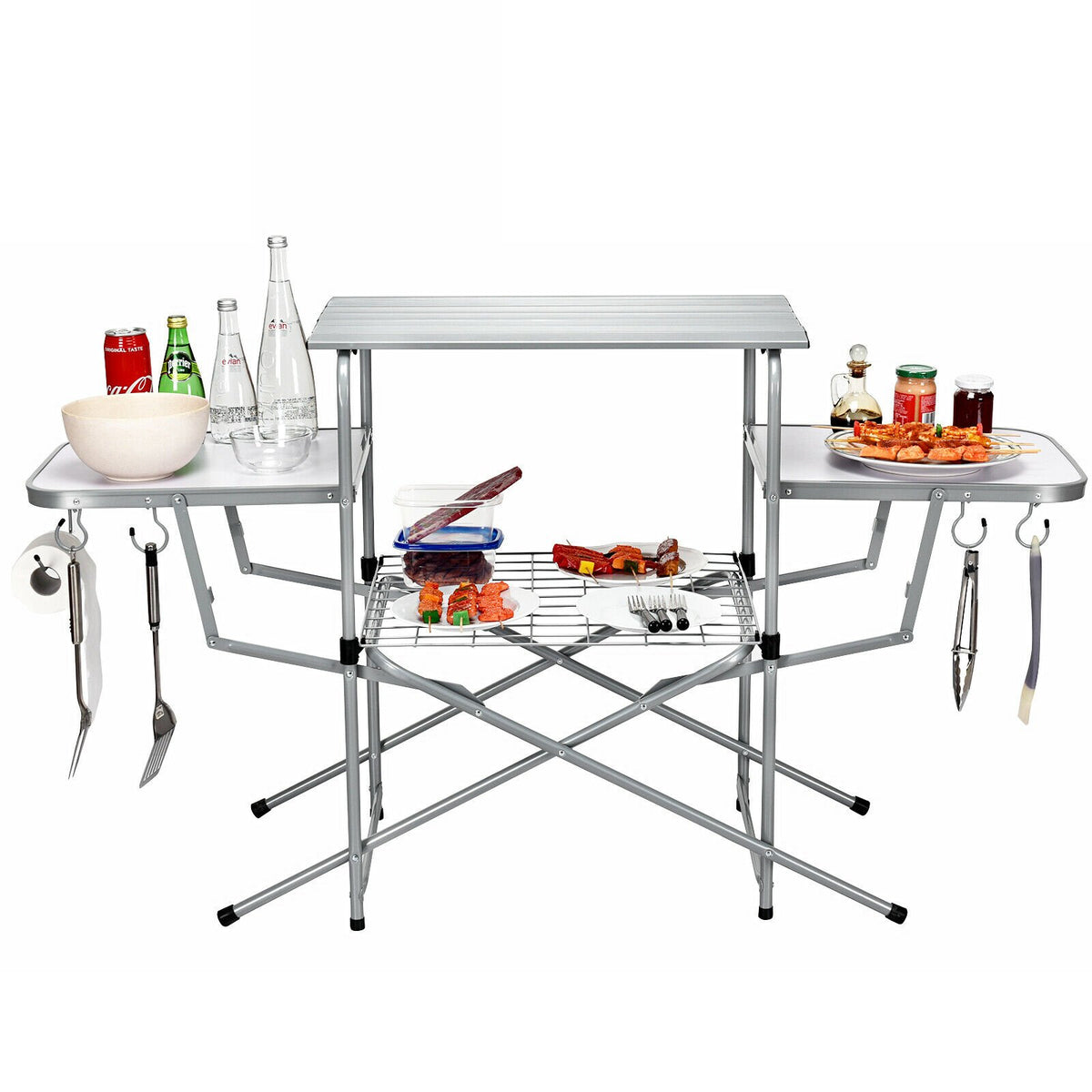 Colour: Silver Material: Aluminium, steel, MDF Overall Dimension: 146 x 45 x 82 cm (L x W x H) Net Weight: 8 kg Weight Capacity of Main Table: 25 kg Weight Capacity of Each Side Table: 10 kg Box Qty:1(May vary by batch)Package includesÔºö 1 x Camping table 1 x Carrying bag 1 x Instruction Manual