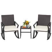 3 Pieces Rattan Patio Bistro Set with Rocking Chairs and Table