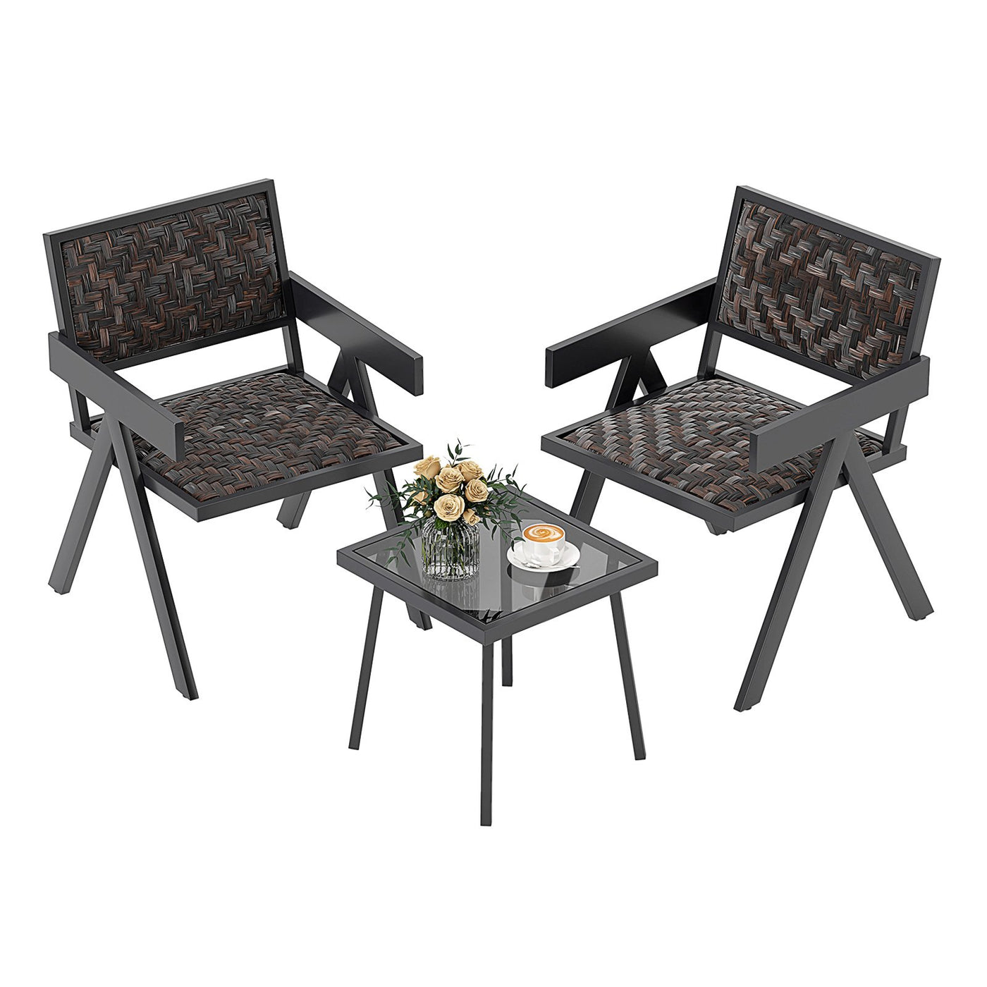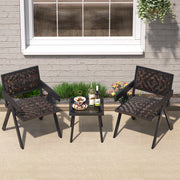 Patio Table and Chairs Set with Quick-Drying Foam for Porch and Balcony-Brown
