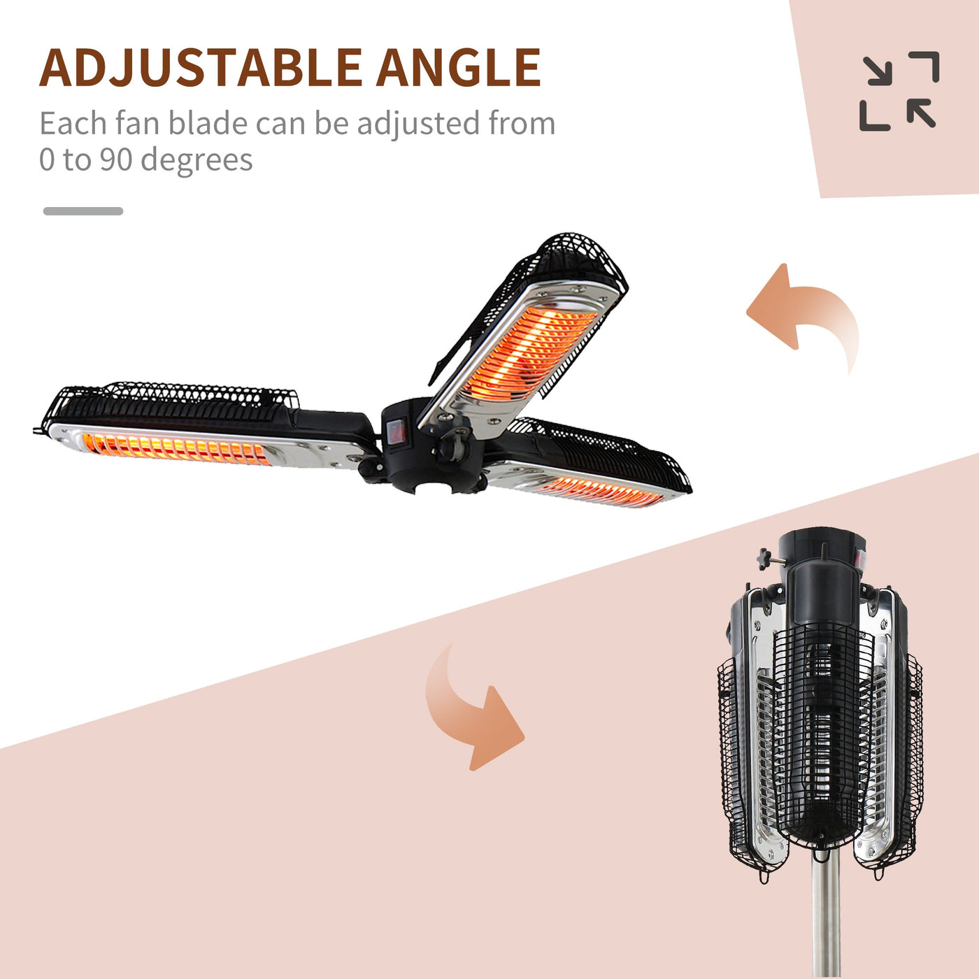 Outsunny Electric Umbrella Parasol Mounted Infrared Heater 2000W Patio Gazebo Outdoor Use - Black