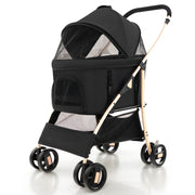 Foldable Pet Stroller with 4-Level Adjustable Canopy and Storage Basket-Black & Gold