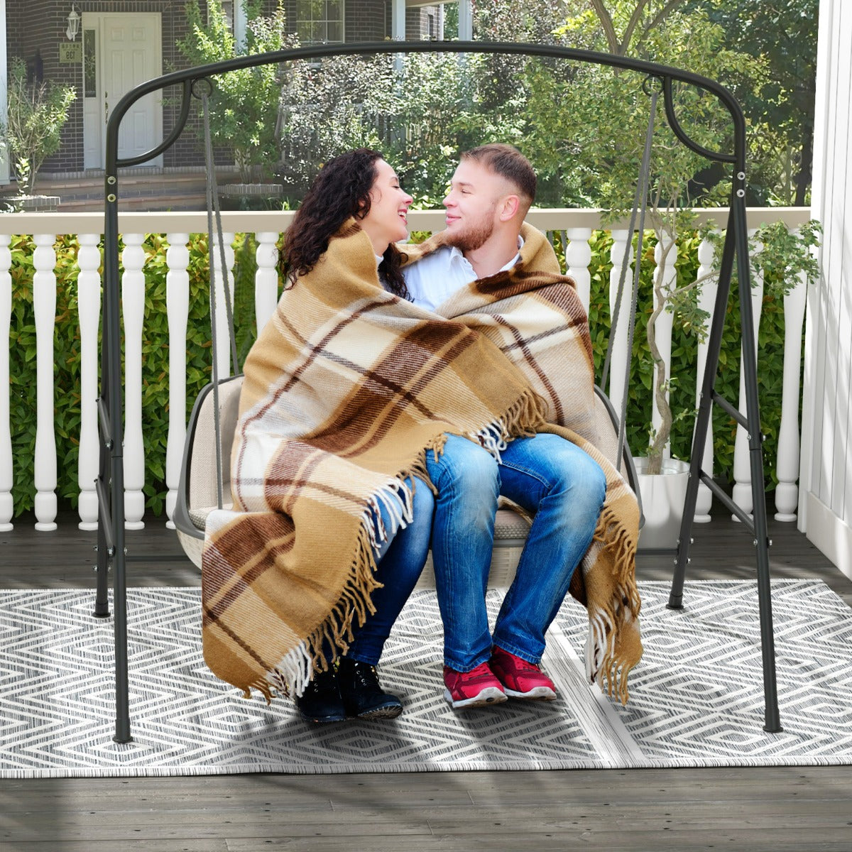 Patio Metal Swing Stand with Double Side Bars and 2-Ring Design-Black