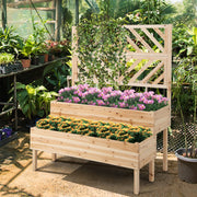 2-Tier Raised Garden Bed with Trellis and Drainage Hole-Natural