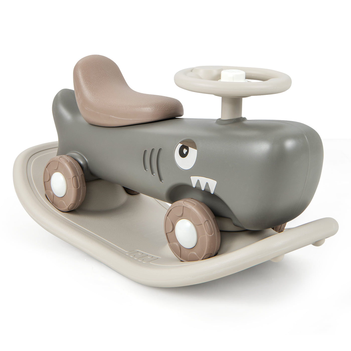 Kids 3-in-1 Convertible Rocking Horse and Sliding Car for Indoor Outdoor Use-Grey