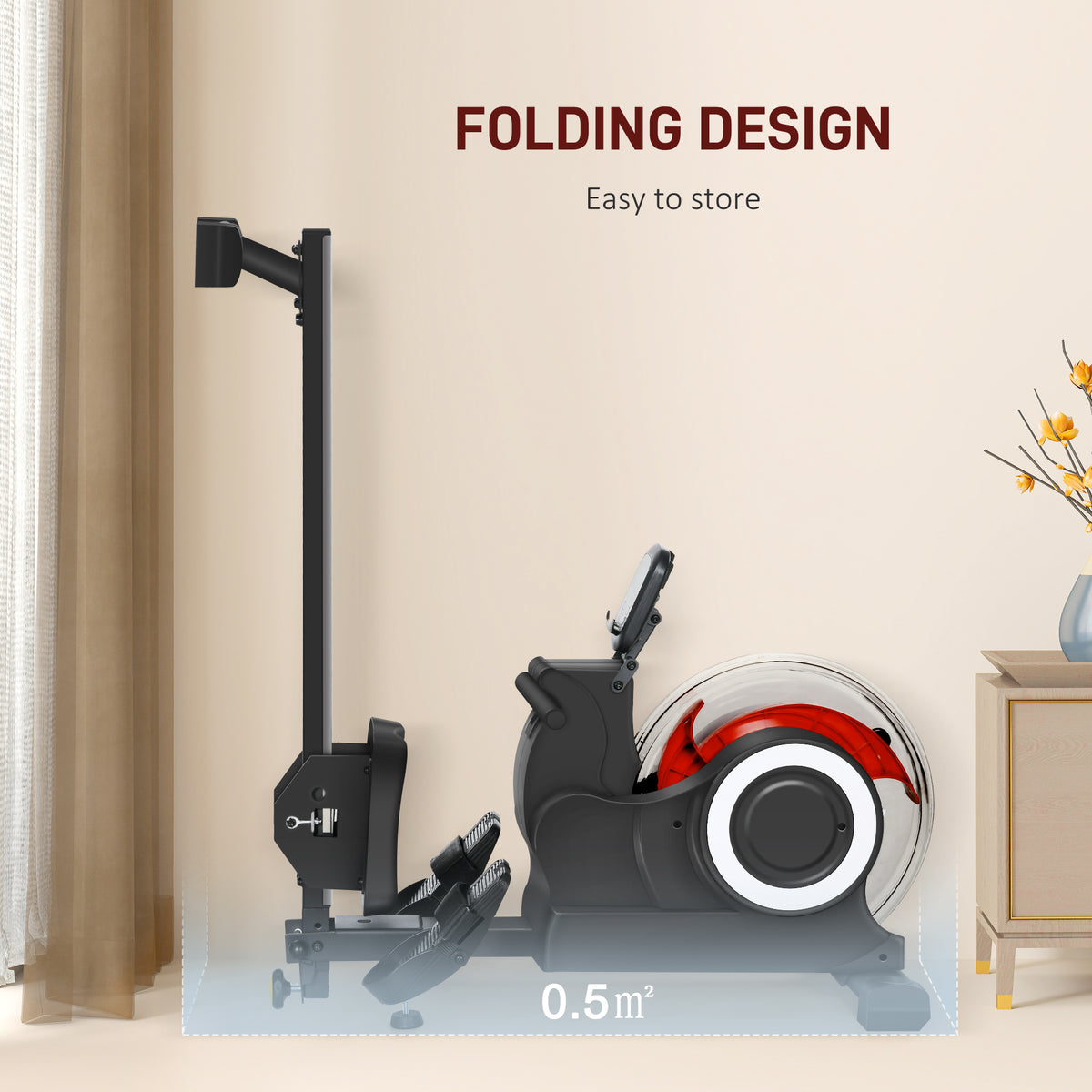 Experience the thrill of the river from your home with the SPORTNOW folding rowing machine! Its innovative design imitates real water rowing with adjustable resistance levels, while the sleek aluminium alloy rail ensures a smooth glide. This water rower folds in half for convenient storage. Comes with non-slip texture pedals, adjustable straps and a holder for your phone or iPad. Dive into fitness with this rowing machine for home use!