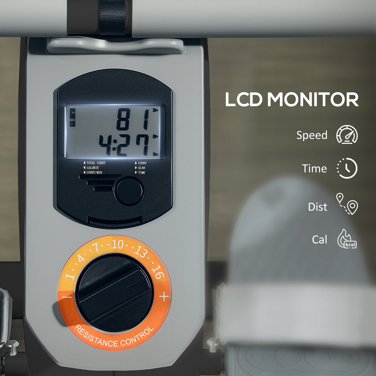SPORTNOW Rowing Machine, 16-Level Magnetic Rower Machine with LCD Monitor and Phone Holder, Black - Black