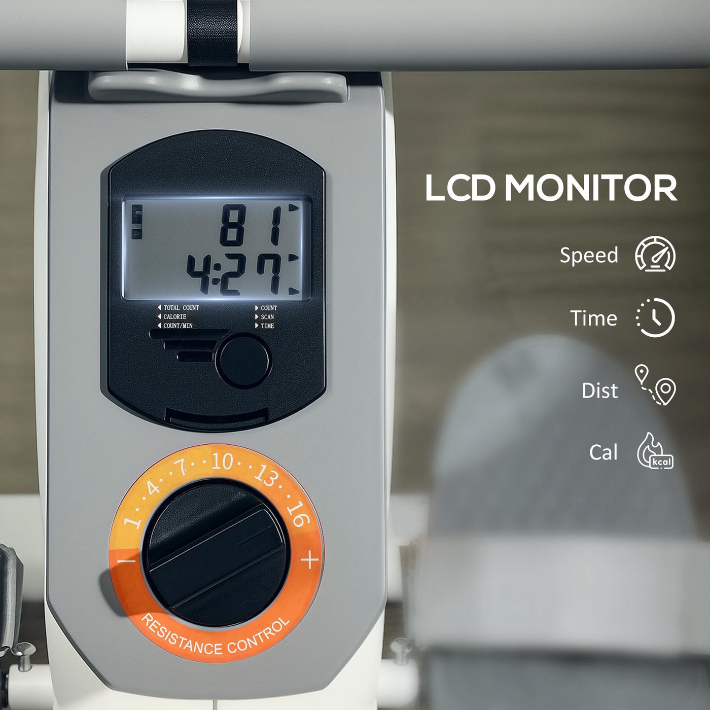 SPORTNOW Rowing Machine, 16-Level Magnetic Rower Machine with LCD Monitor and Phone Holder, White - White
