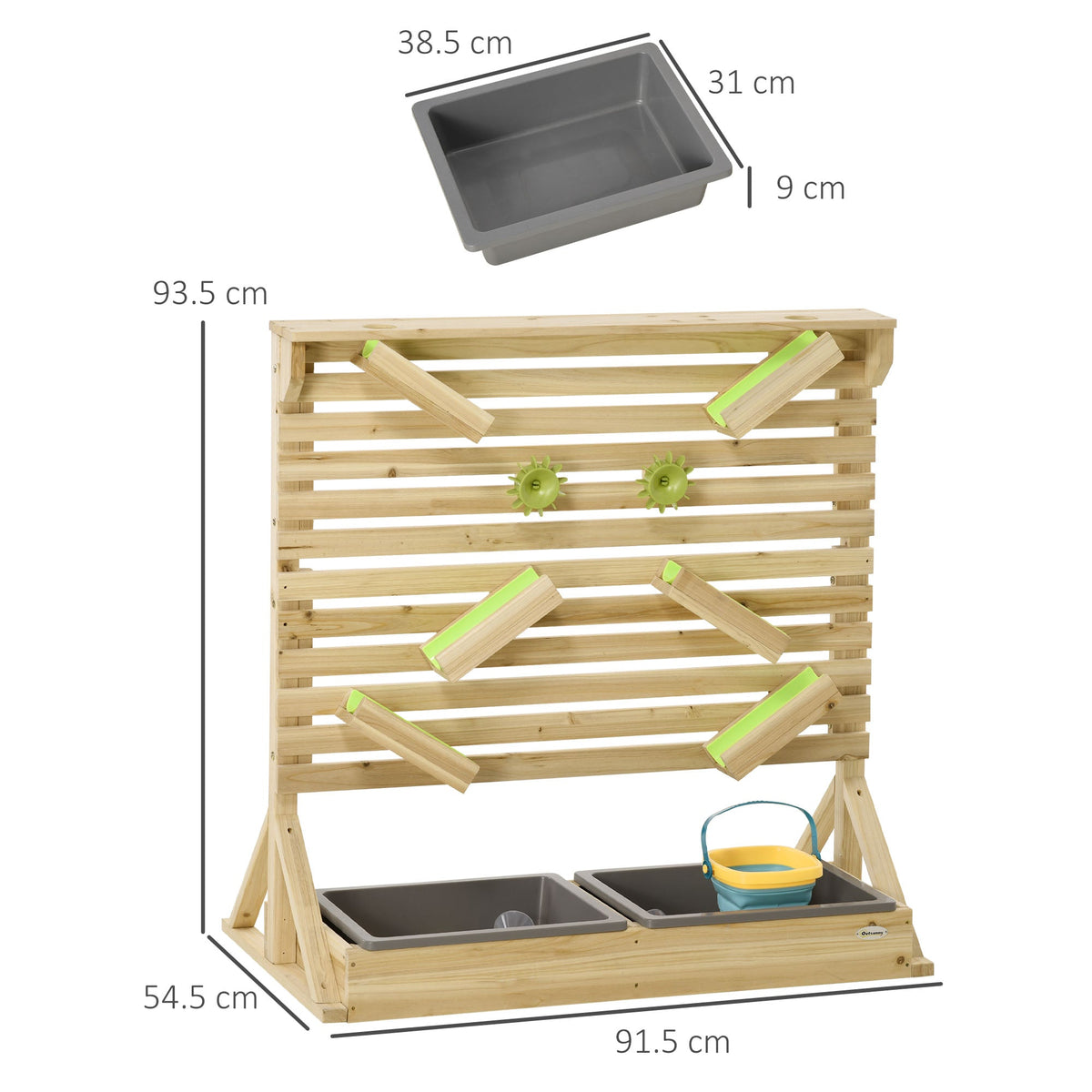 Outsunny Outdoor Kids Running Water and Sand Playset, with 18 Accessories - Natural wood finish