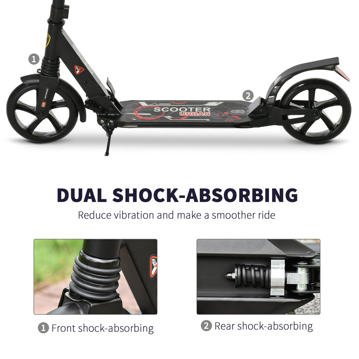 HOMCOM Folding Kick Scooter, Adjustable Ride On Scooter with 200mm Big Wheels and Double Shock Absorption, Urban Scooter for 14+ Teens Adult, Black - Black