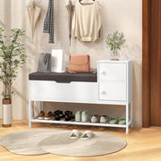 Shoe Entryway Bench with Flip Top Box and 2 Door Cabinets-White