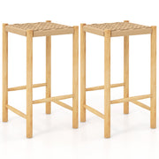 Enjoy relaxation with this exquisite set of 2 stools/bar stools, which are crafted with robust rubber wood frame to ensure unrivaled stability and long-term durability. Also, the impeccable wood surface adds a touch of refinement with its seamless finish and natural allure. Plus, the meticulously woven seat not only enhances comfort but also adds a touch of sophistication, making these dining stools/bar stools a captivating focal point in any setting. Boasting versatility and charm, this elegant dining stool/bar stool set effortlessly transitions between indoor and outdoor settings, making it an ideal choice for kitchens, dining rooms, balconies, and beyond. With built-to-last material and rustic yet alluring aesthetic, these stools are sure to elevate any space they grace. Robust Rubber Wood Frame: The main frames of these 2 dining stools/barstools are constructed of high-grade rubber wood which is stable and solid for long-term use. And the wood surface is not only in high stability and durability, but also burr-free and natural. Elegant Woven Design: The paper rope woven seat offers breathable sitting feelings so you won't feel sweaty even after long-time sitting. Also, the well-woven design adds a piece of elegance, making the stools/bar stools always eye-catching. Well-Made Stool Chair: The double cross bars under the seat effectively enhance the overall stability. And the anti-slip footpads avoid scratches to the floor. Furthermore, the nice-looking wood texture brings you natural feeling in your dining space. Perfect for Different Places: This elegant stool/ bar stool set with rustic and appealing look suits well for both indoor and outdoor occasions. You can enjoy dining or relaxing on the stools in your kitchen, dining room, balcony and so on. Simple Assembly: The clear instruction and complete accessories will help you finish the assembly in high efficiency. Please do not tighten all the screws until all the hole are aligned.