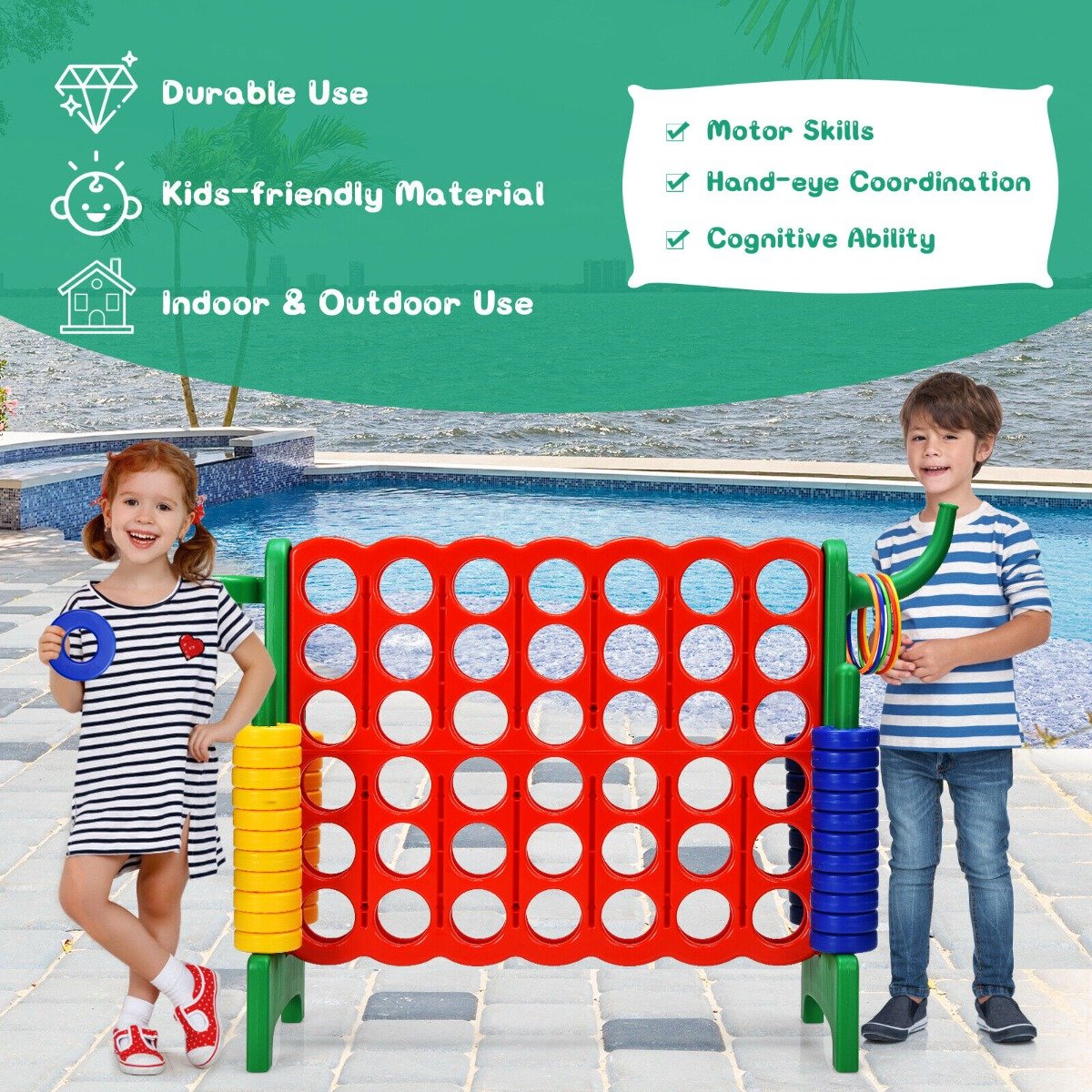 Giant Connect 4 Game Jumbo with 42 Rings-Green