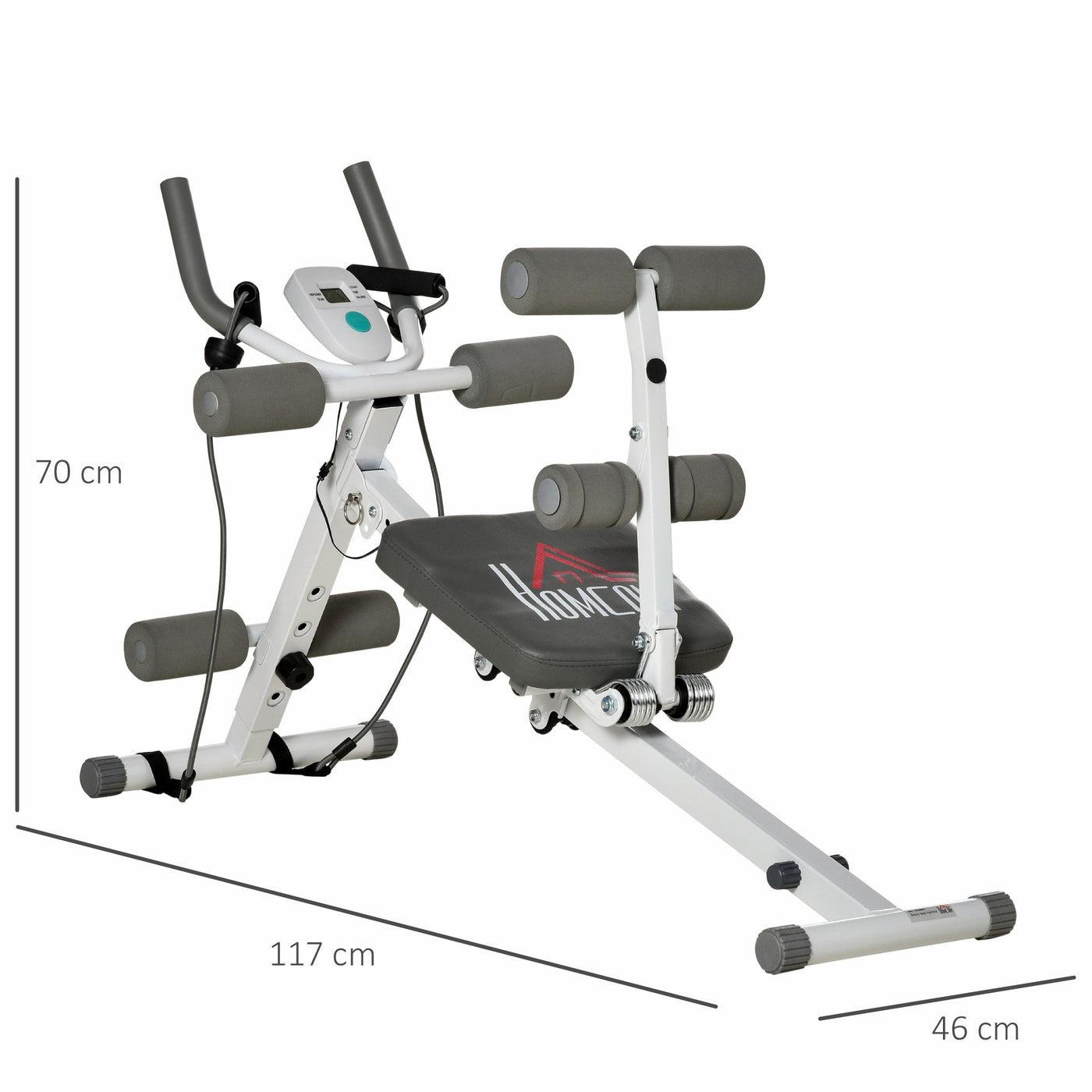 HOMCOM 2-IN-1 Core Abdominal Ab Trainer Sit Up Bench with LCD Screen, Adjustable Fitness Crunch Machine for Home GYM - White
