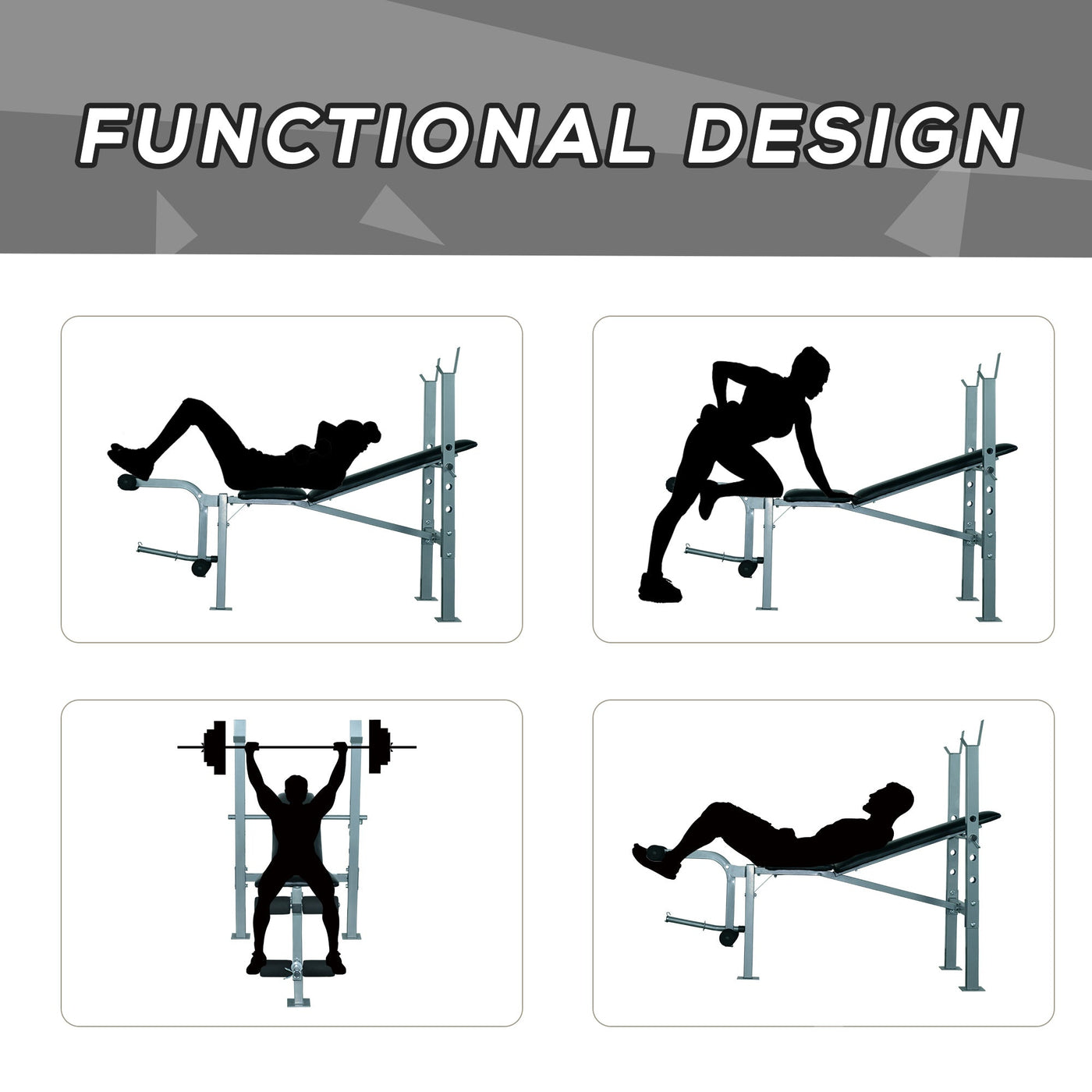 This HOMCOM weight bench is a great addition to your workouts, perfect for training your biceps, pectoralis and trapezius. You can lay comfortably on the bench on the padded seat and can even adjust the back at 4 levels to meet your workout routines. The bench is made from a steel frame able to support up to 200Kg and is ideal as an addition to your home gym and exercise routine.