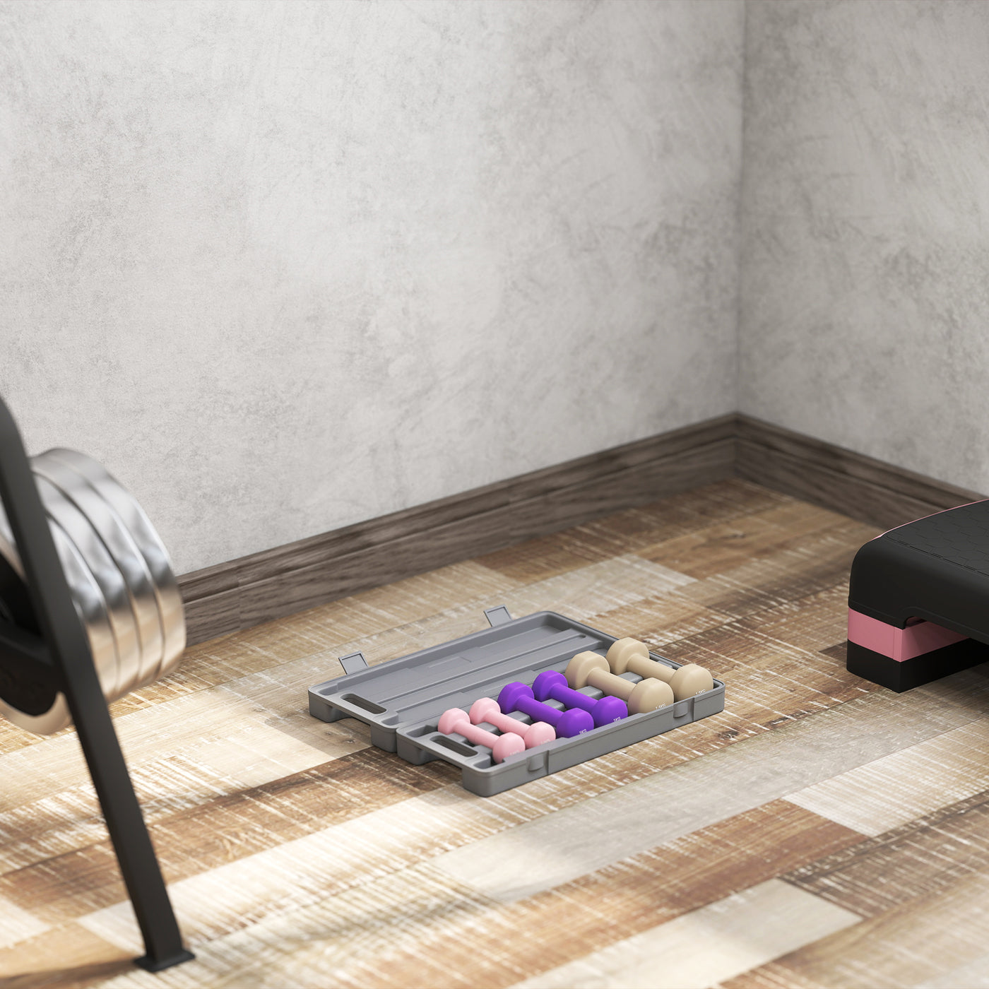 Stay active at home with our HOMCOM dumbbell set. With three pairs of dumbbells, weighing 0.5kg, 1kg and 1.5kg respectively, it's suitable for lifting, cardio, yoga, squats, get-ups and more, satisfying your different training needs. Bright colours and easy-to-read numbers, they're easy to organise for an efficient workout. Plus, it comes with a convenient suitcase for easy storage and travel. Never miss a session with this adjustable dubbells pair, maximising your fitness potential.