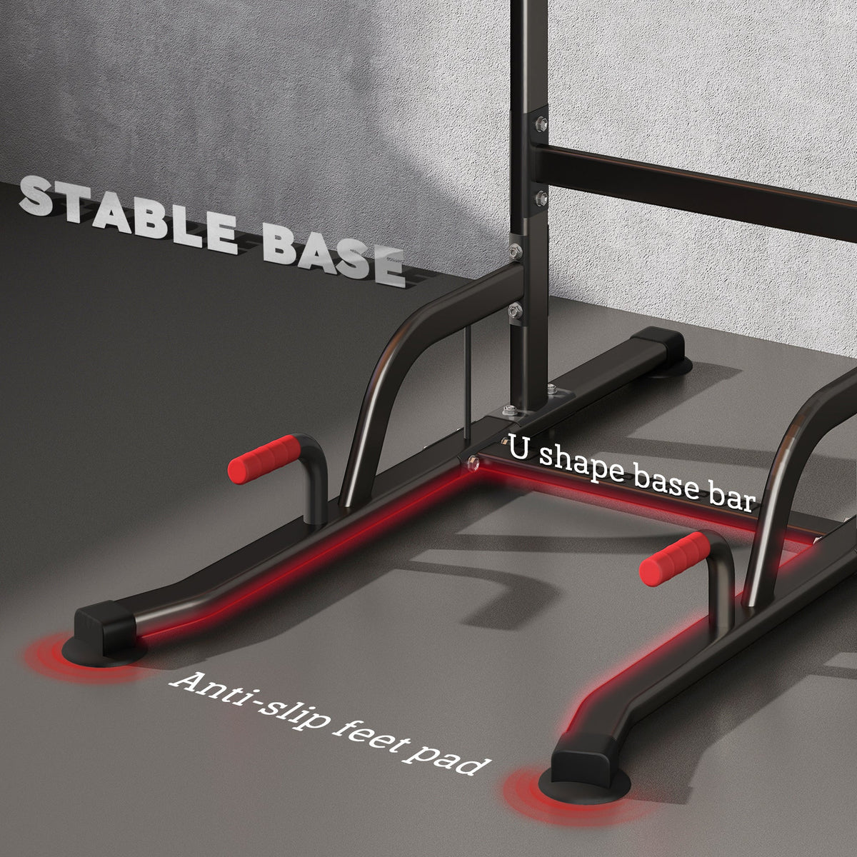 HOMCOM Power Tower Station with Dip Stand, Pull Up Bar Home Office Gym Training Workout Equipment - Black
