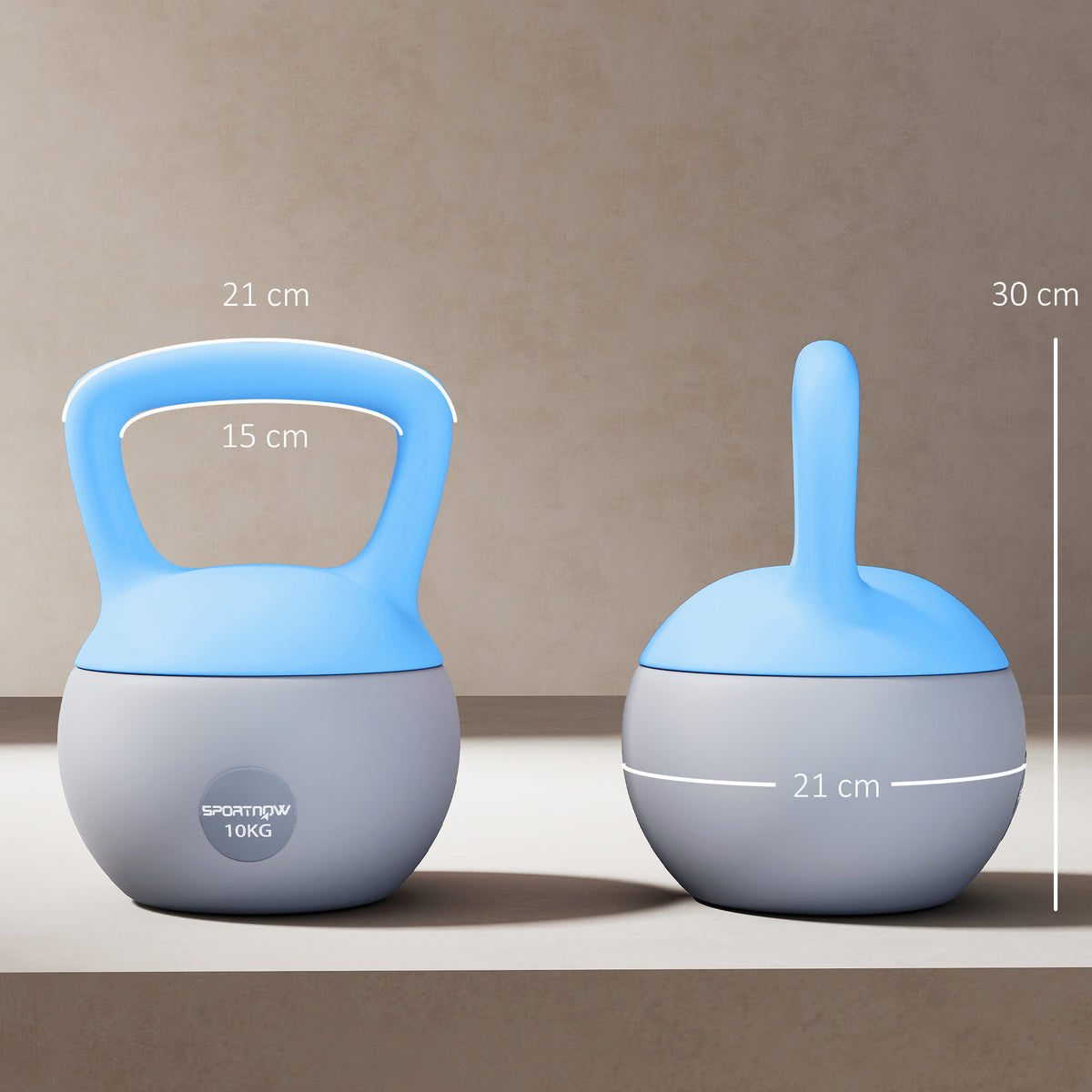 SPORTNOW 10KG Soft Kettlebell, Kettlebell with Non-Slip Handle for Home Gym, Weight Lifting, Strength Training, Light Blue/Grey - Light Blue and Grey