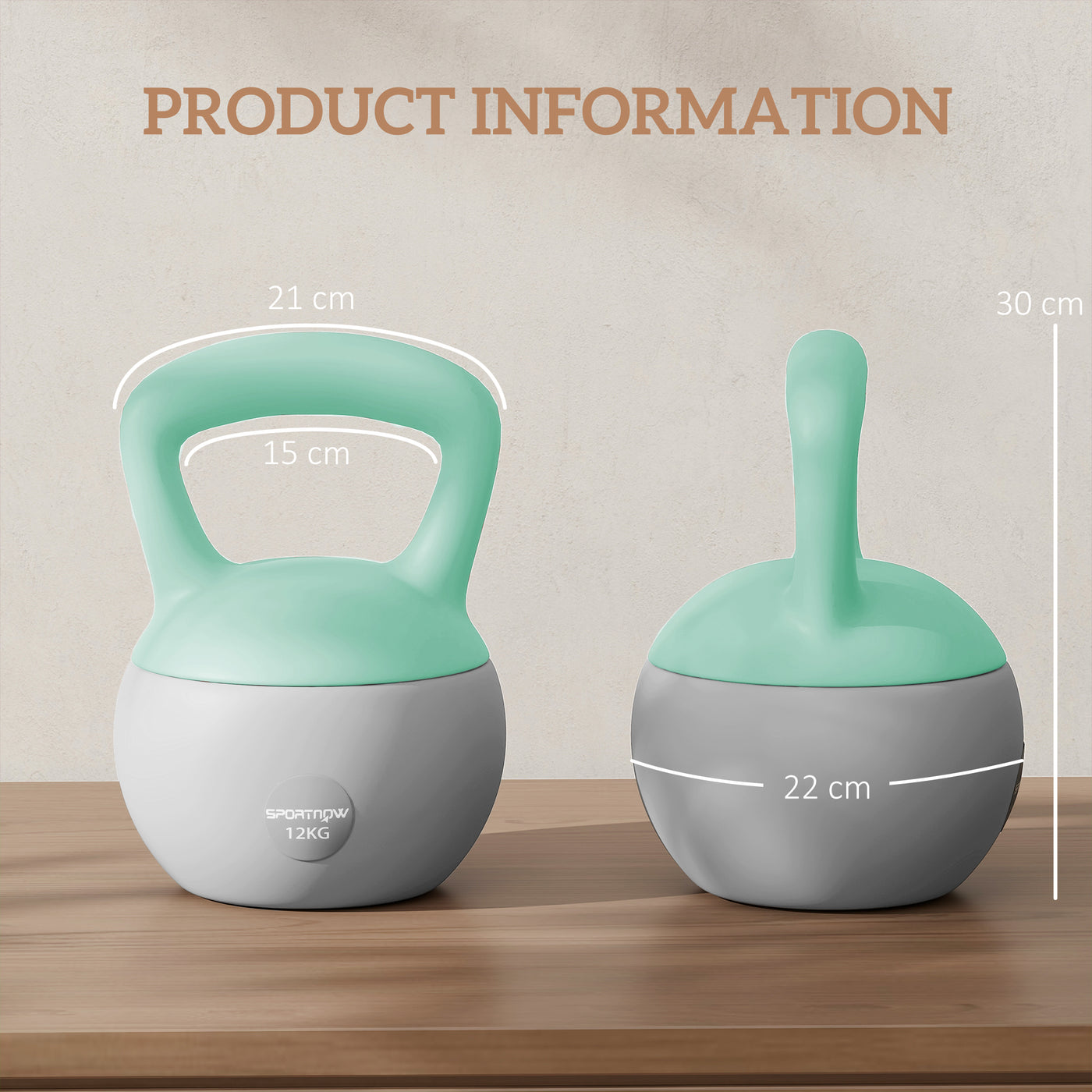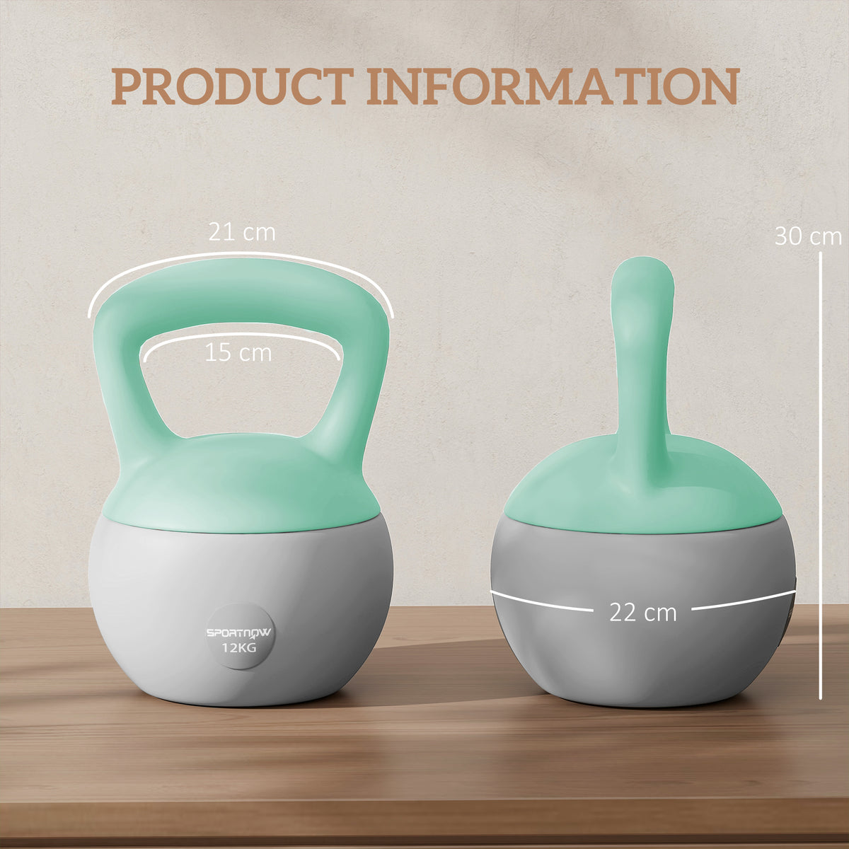 SPORTNOW 12KG Soft Kettlebell, Kettlebell with Non-Slip Handle for Home Gym, Weight Lifting, Strength Training, Green/Grey - Grey, Green
