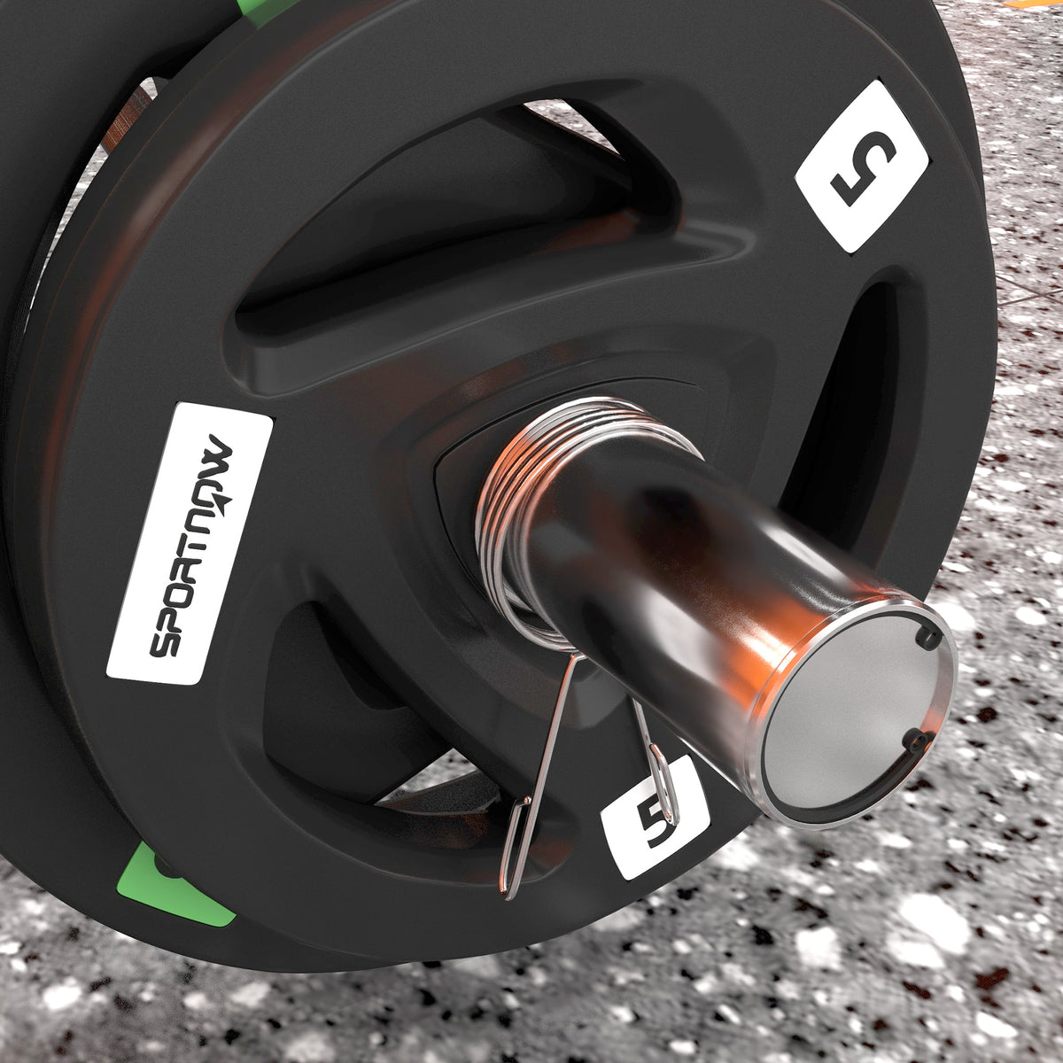 Increase your strength with our SPORTNOW EZ bar with weight plates. The excellent equipment for bench presses, squats, deadlifts, pendlay rows, military presses and more, ensuring you feel the burn in all muscle groups. Suitable for weight plates with a 5cm hole, it can hold up to 100kg; choose a comfortable weight and get started. Non-slip handles for an excellent grip, whilst the spring clips keep the plates secure, adding safety to your workout. Reach your goals from the comfort of your home.