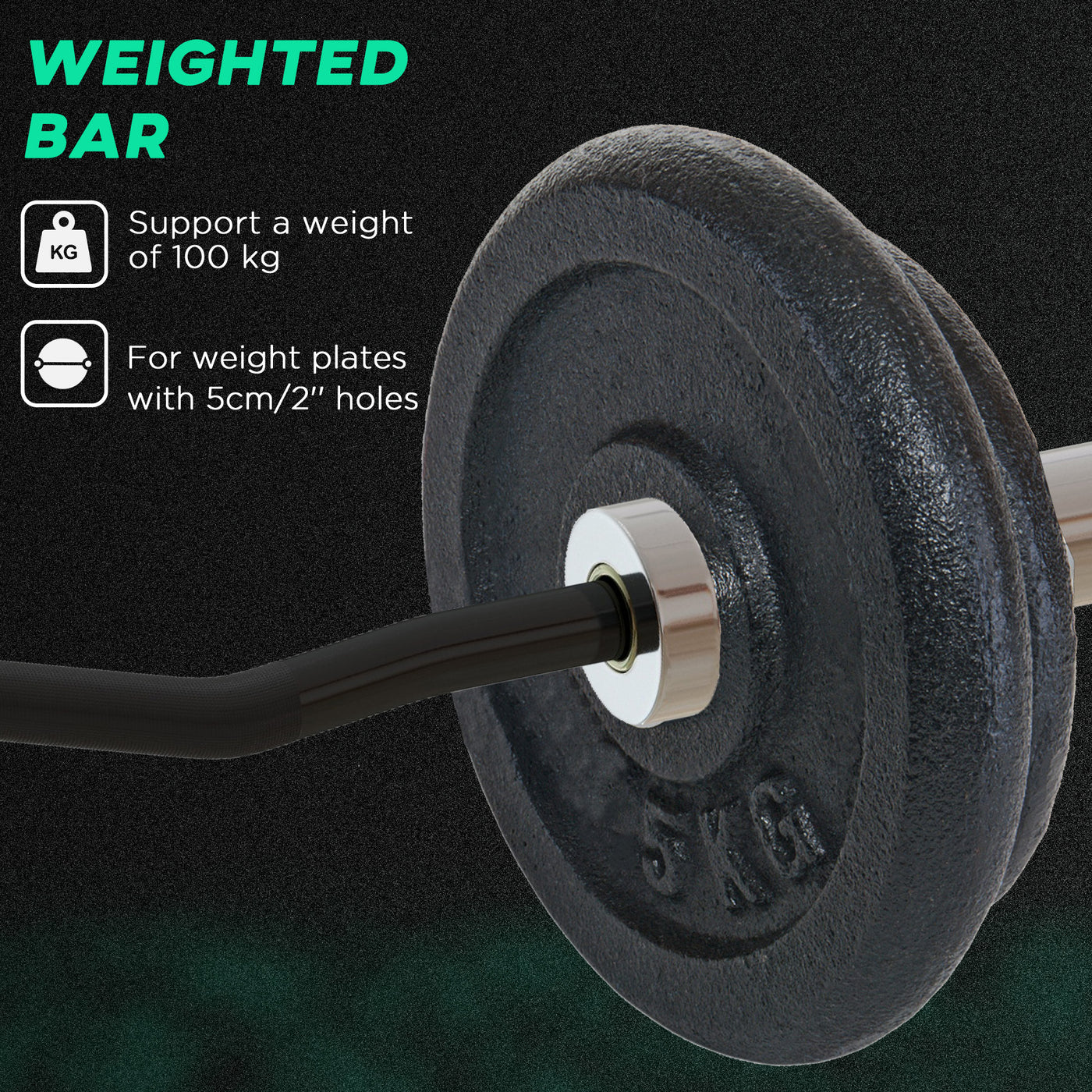 Increase your strength with our SPORTNOW EZ bar with weight plates. The excellent equipment for bench presses, squats, deadlifts, pendlay rows, military presses and more, ensuring you feel the burn in all muscle groups. Suitable for weight plates with a 5cm hole, it can hold up to 100kg; choose a comfortable weight and get started. Non-slip handles for an excellent grip, whilst the spring clips keep the plates secure, adding safety to your workout. Reach your goals from the comfort of your home.