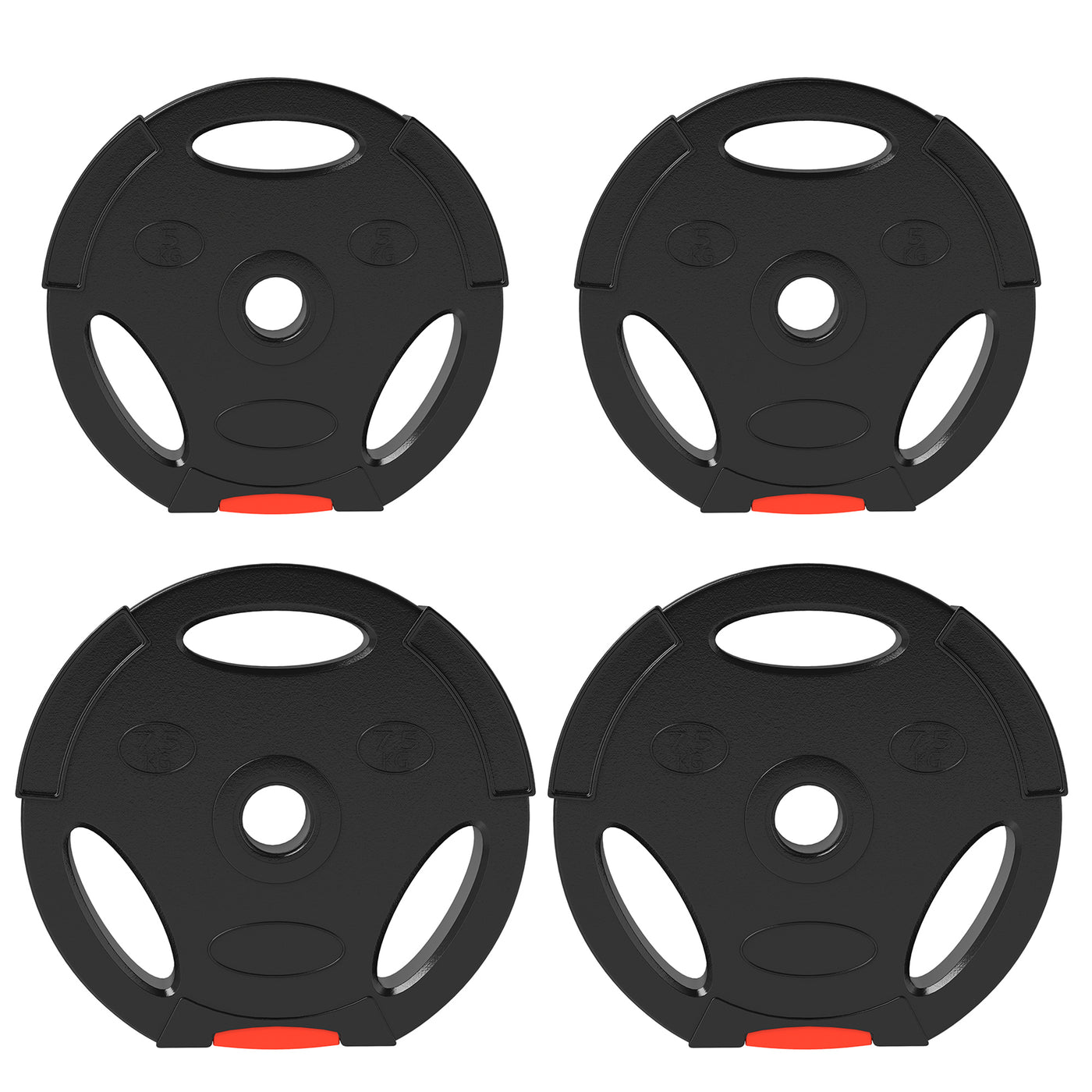 Build strength and stay active with the SPORTNOW weight plate set! It includes two 7.5kg and two 5kg plates, each with a 2.5cm centre hole to fit standard barbells with ease. Designed with three grip holes, they're great for barbell-free exercises too, so you can switch up your routine. The tough polypropylene cover helps protect your floors from drops, so you can train confidently, wherever you lift.