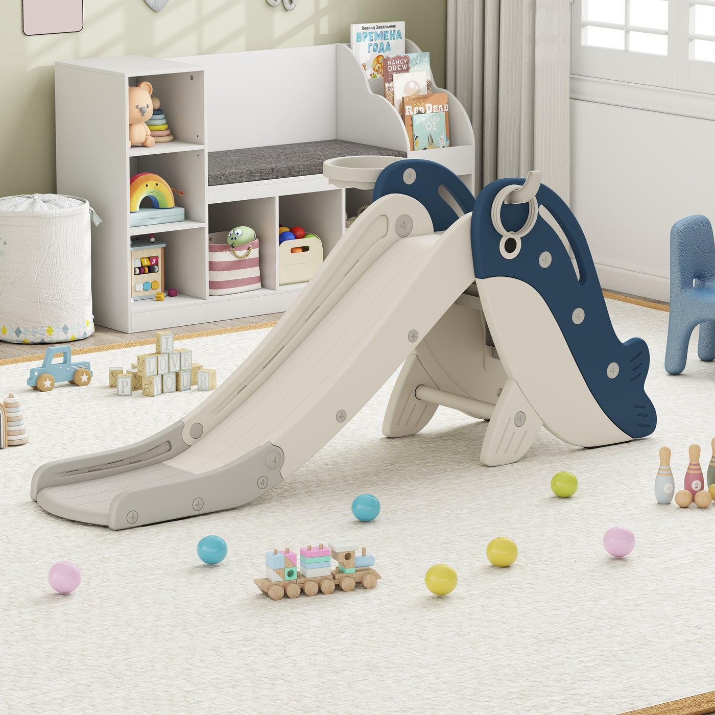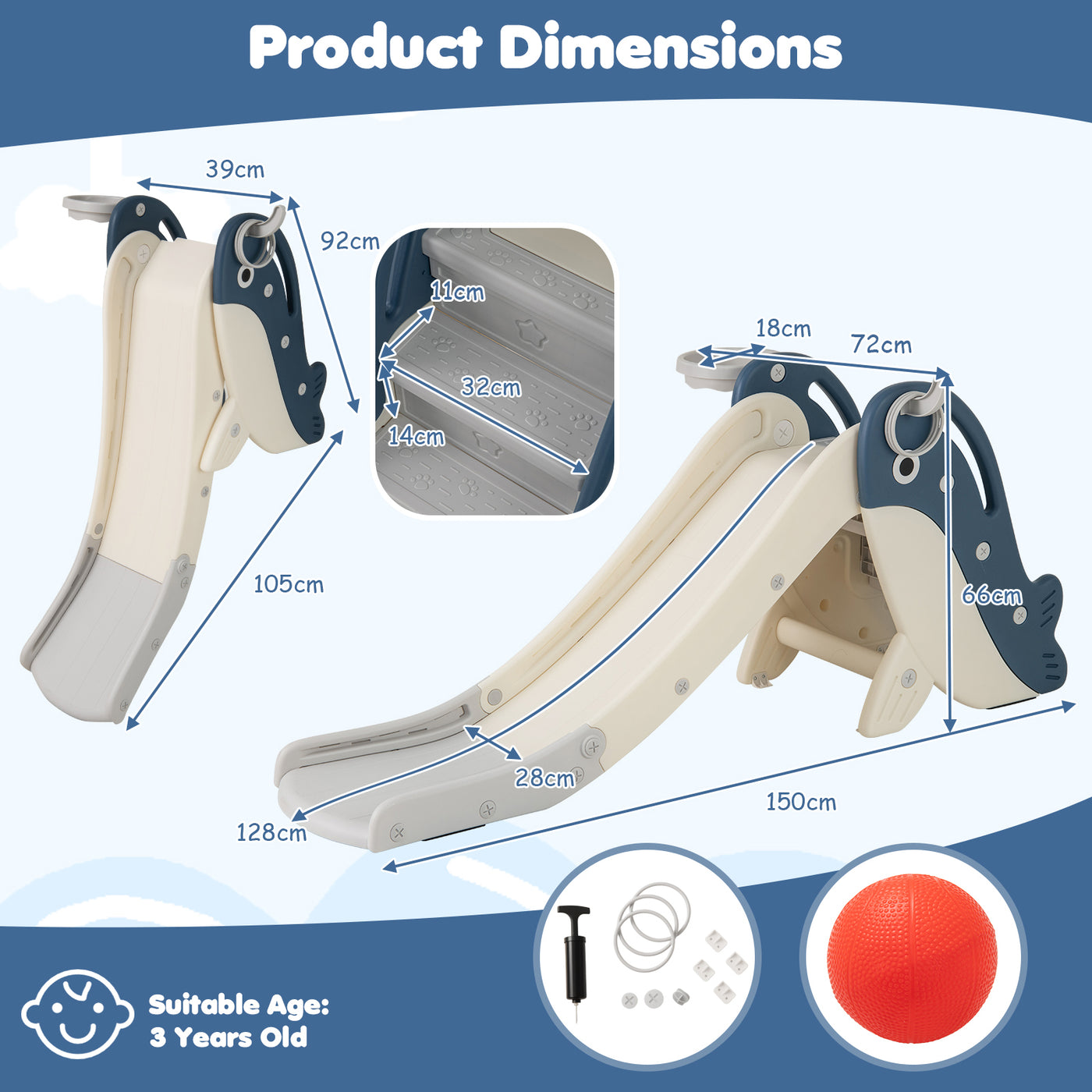 4-in-1 Toddler Slide with Basketball Hoop and Space-saving Folding Design-Blue