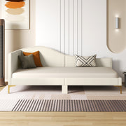 Single Size Upholstered Daybed Rivet-Tufted Platform Bed with Metal Legs-Beige