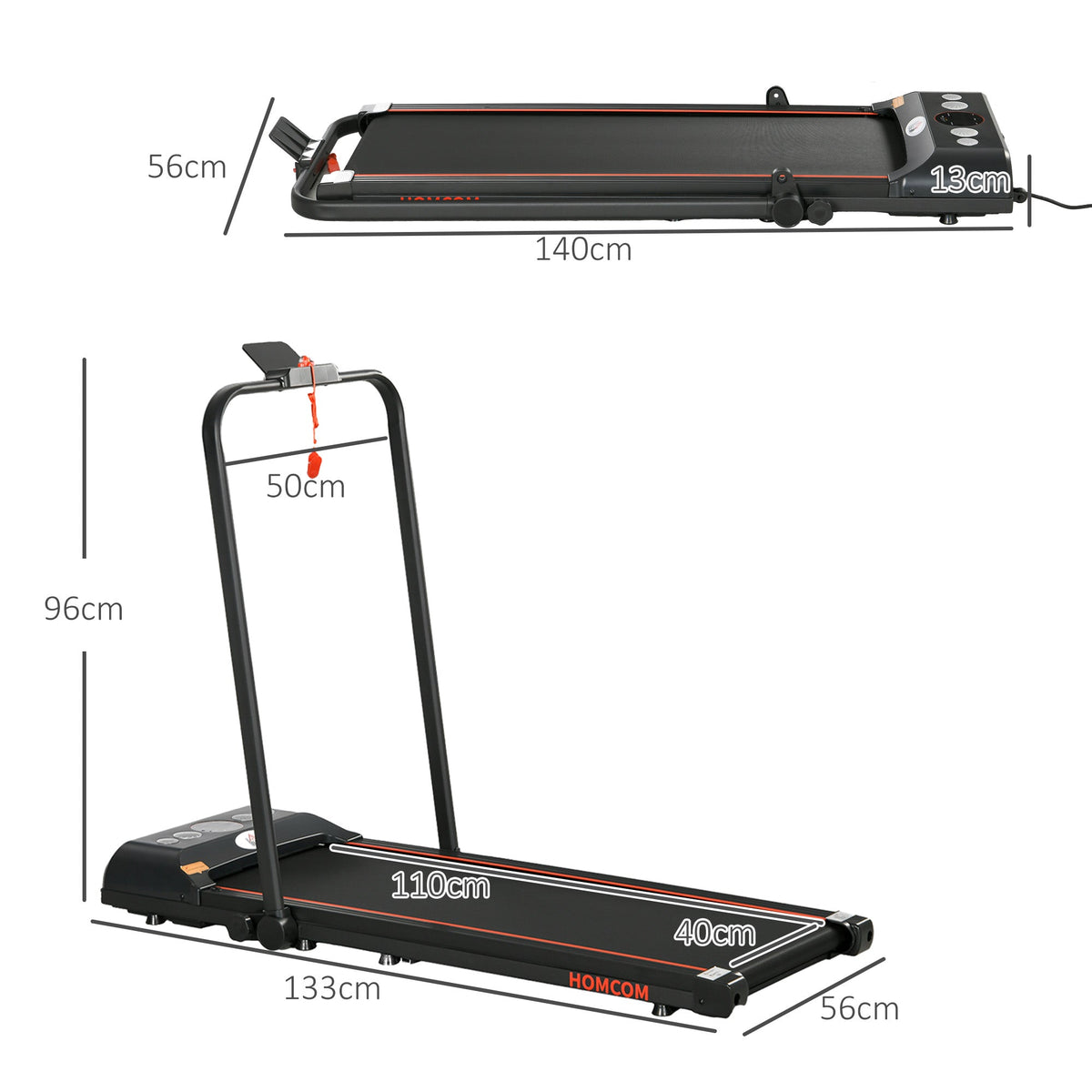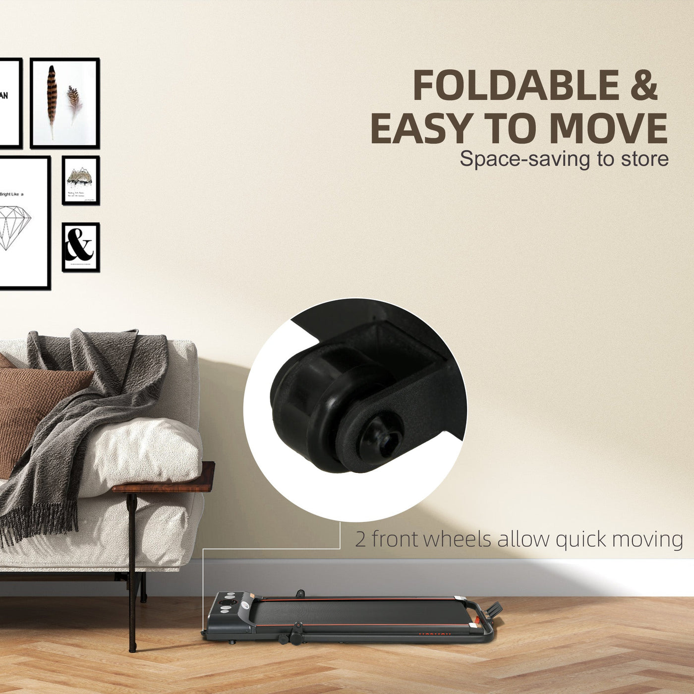 HOMCOM Foldable Walking Treadmill, with LED Display and Wheels, for Home, Office, Gym, Red - Black