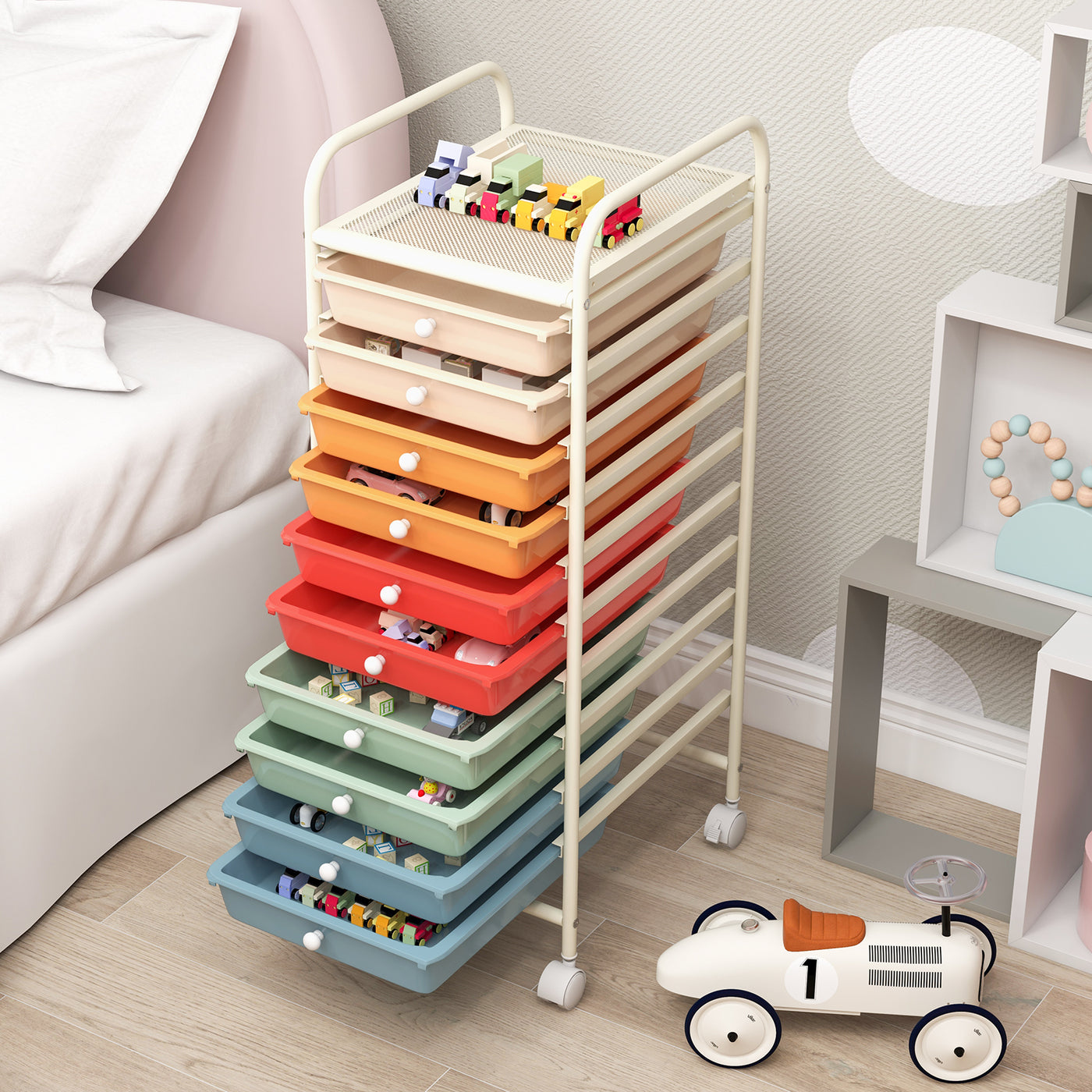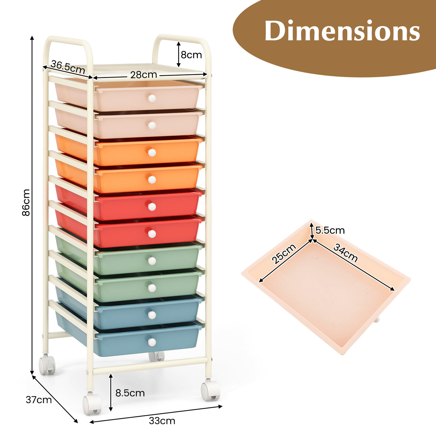 10 Drawers Mobile Storage Trolley with 4 Wheels for Beauty-Colourful