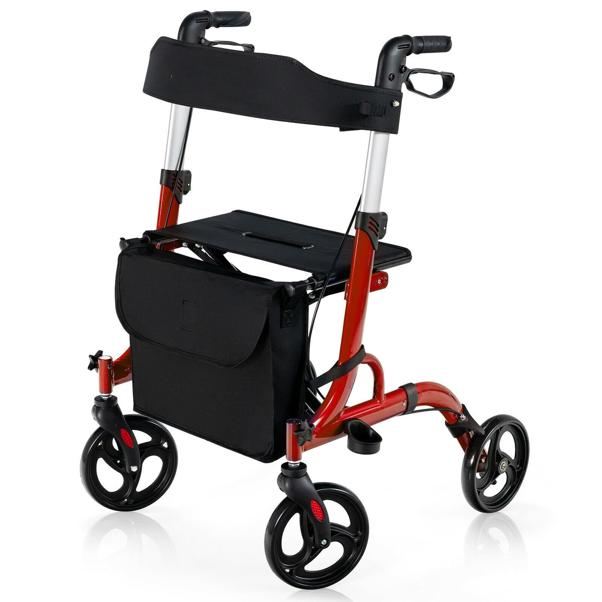 2 in 1 Walker Aluminium Mobility Walking Aid with Seat Adjustable-Red