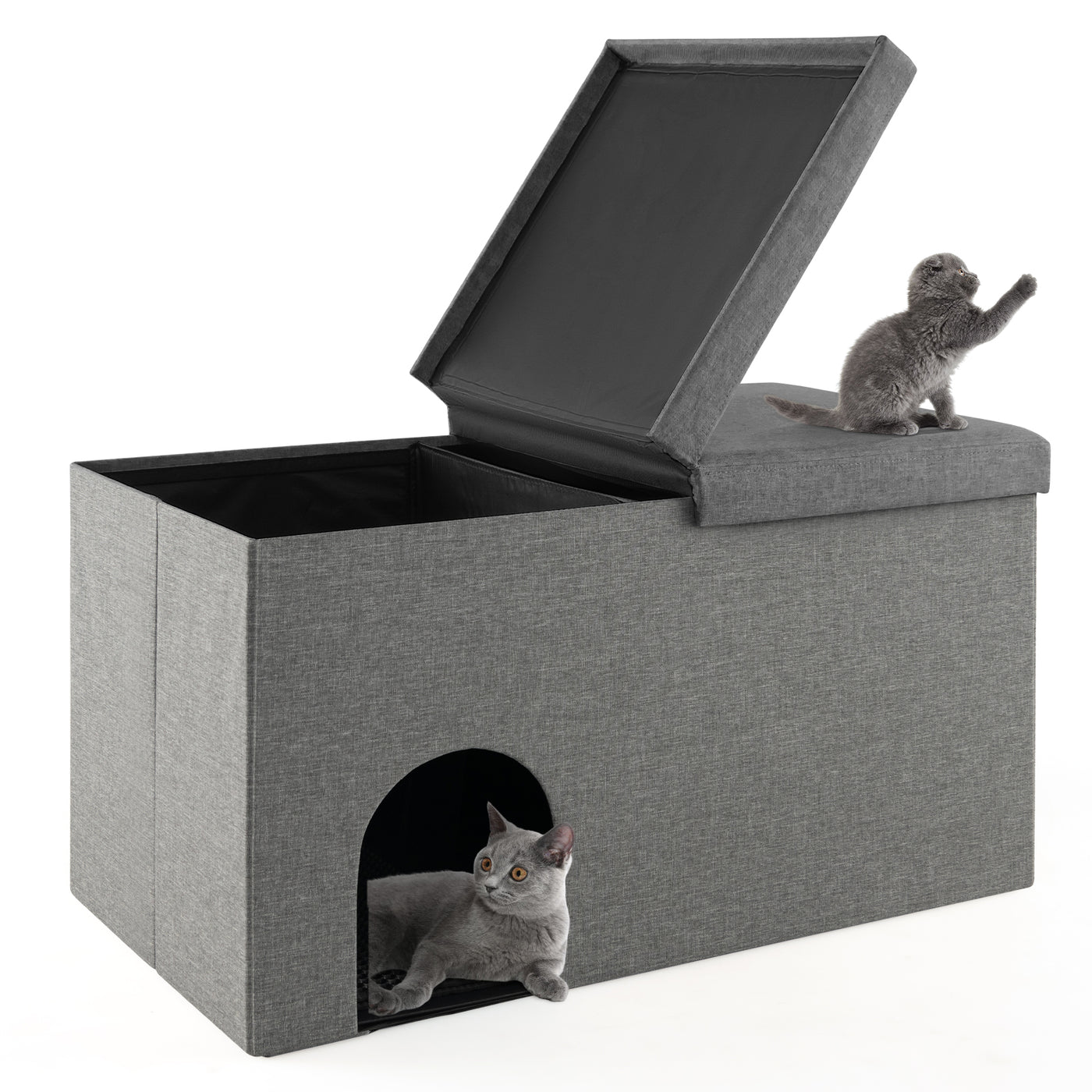 3-in-1 Hidden Cat Washroom Ottoman Shoe Bench-Grey