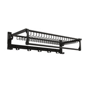 Do you struggle to find a place to hang your towels and toiletries, leaving your bathroom in disarray? This folding bathroom towel rack is the perfect solution! The top basket of this towel rack provides a convenient way to store your bath items, skincare products or dry towels, ensuring they are always within reach as well as preventing them from dropping. The lower towel bar allows you to hang your towels with ease. What's more, the towel shelf comes with 2 fixed hooks on each side and 5 movable hooks in the middle to organize your bathroom items easily. Crafted from space aluminum material with high-temperature baking paint surface, the towel rack ensures outstanding rust resistance for long-lasting use. Additionally, this foldable towel rack is perfect for small bathrooms or laundry rooms, which will add convenience to your life. Foldable Design and Versatile Use: The towel rack features a 90° folding design, which makes full use of space. It can be easily stored away when not in use. Plus, the towel shelf is not only suitable for bathroom, but also for laundry, entryway, kitchen, etc. Good Rust Resistance and Durability: Made of high grade space aluminum material with high-temperature baking paint surface treatment, the bathroom towel rack is sturdy, rustproof, waterproof and durable for years to come. Plenty of Storage Space: The top basket and lower bar offer ample storage space for towels, shampoos, conditioners, facial cleanser and more. In addition, the folding towel shelf comes with 4 integrated hooks and 5 sliding hooks to hang bath balls, brushes, etc. Thoughtful Design: The 3cm/1.2" heightened guardrail prevents your items from falling from the top shelf. The mesh storage basket with reasonable spacing promotes ventilation. Moreover, the towel rack features smooth arc edges for added No Assembly Required: Due to the folding design, this bathroom towel rack doesn't need to be assembled, which greatly saves your time and energy. Besides, equipped with detailed instructions, 4 screws, 4 anchors and 1 adhesive glue, the towel shelf is convenient to install.