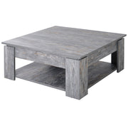 HOMCOM 2 Tier Wood Coffee Table Side Table Bottom Storage Shelf Simple Modern Living Room Grey Wood Grain - Grey