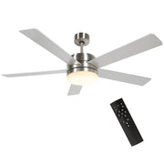 HOMCOM 52" Ceiling Fans with Light and Remote, 132CM LED Ceiling Fan with 5 Blades, 5-Speed, Timer, Quiet Reversible DC Motor, for Bedroom, Living Room, Silver and Beech Wood-effect - Beech wood