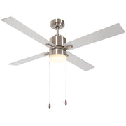 HOMCOM Ceiling Fan with LED Light, Flush Mount Ceiling Fan Lights with Reversible Blades, Pull-chain, Silver and Natural Tone - Silver